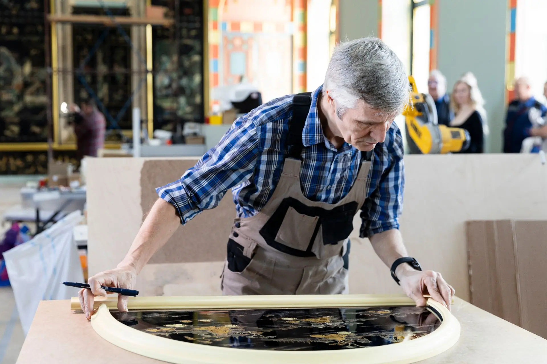 Все последующие этапы курировали китайские эксперты и научные сотрудники музея. С китайской стороны – руководитель отделения «Искусство лака» Института искусства Университета Цинхуа (Пекин), заместитель председателя Комитета по лаковой живописи Союза художников Китая, профессор Чэн Сянцзюнь, а также начальник и научный исследователь лаборатории реставрации лаковых изделий научно-технического департамента охраны памятников культуры Музея Гугун (Пекин) Минь Цзюйжун.