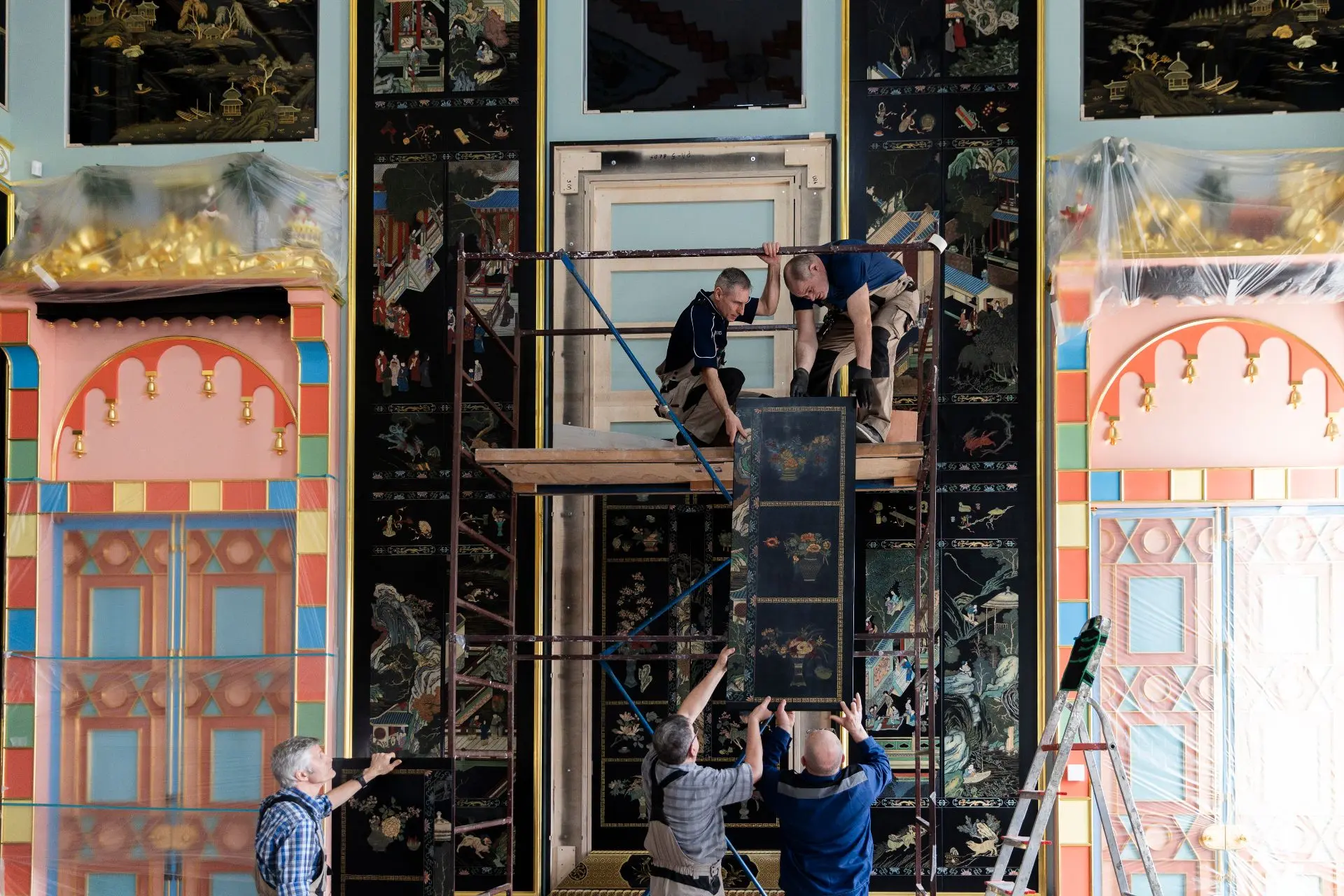 В музее-заповеднике «Царское Село» вышел на финальный этап сложный реставрационный процесс – монтаж лаковых панно в Китайском зале Зубовского флигеля Екатерининского дворца.