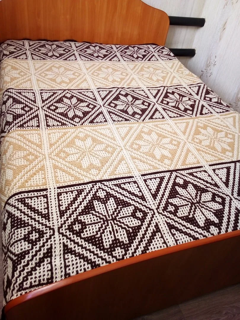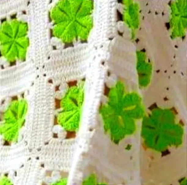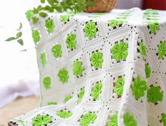 Такие чудесные мотивы с четырехлистным клевером непременно должны принести счастье. Особенно, если связать из них плед!