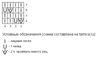 Симпатичный вариант вязания резинки 1 на 1. Раппорт- 2 петли, 2 ряда Количество петель- при поворотном вязании -нечетное, при круговом- чётное. 1 ряд- кром.п., 1 изн.п., 1 лиц.скрещ.п., 1 изн.п., кром.п. 2 ряд- кром.п., 1 лиц.п., 1 петлю переснять не провязывая нить перед работой, 1 лиц.п., кром.п. Повторять 1 и 2 ряд.