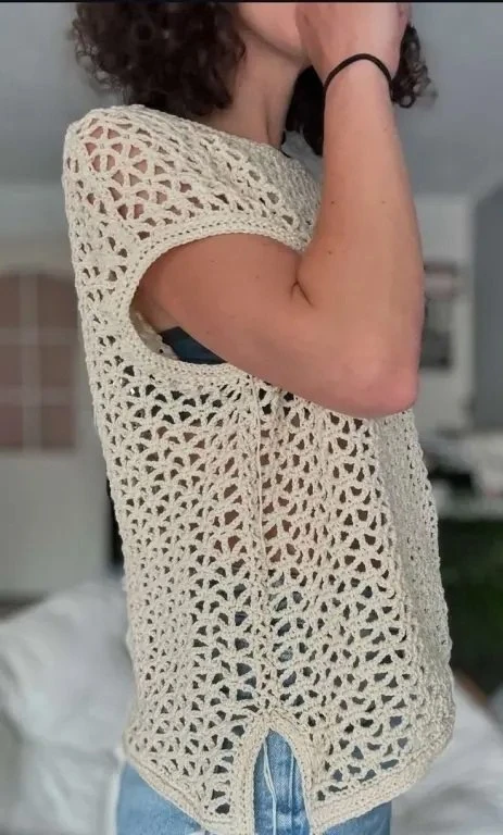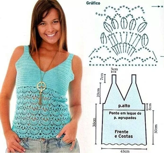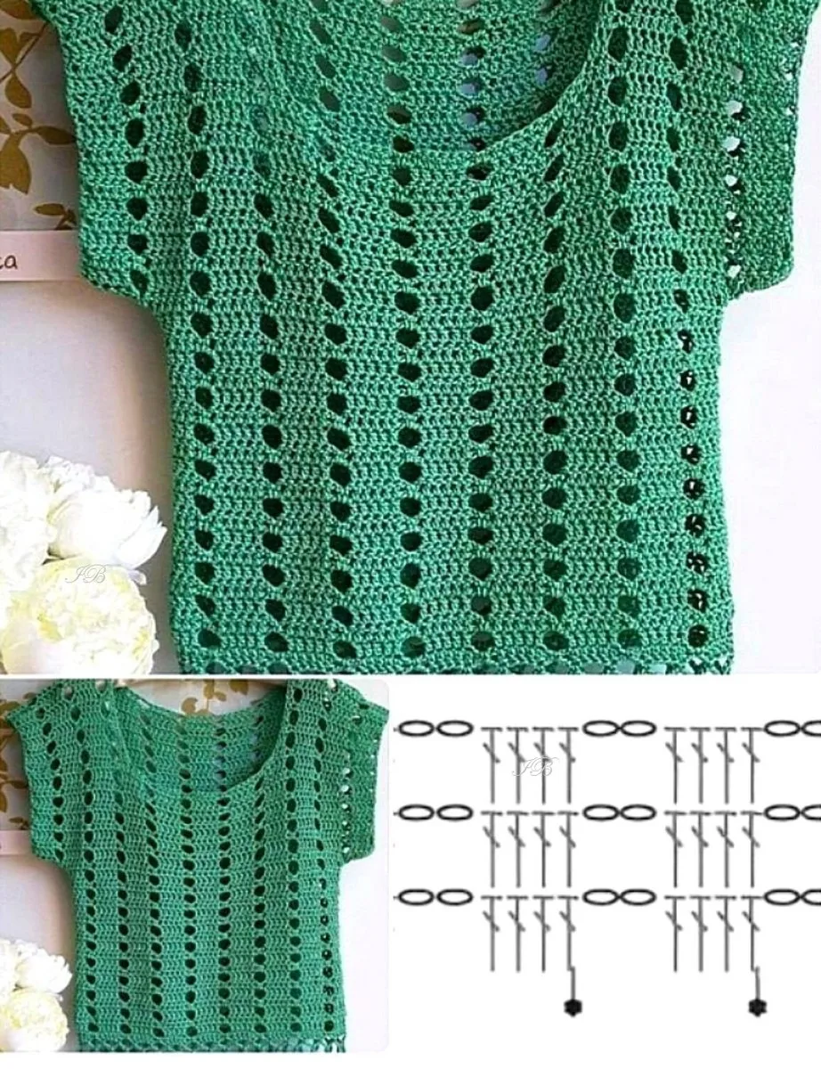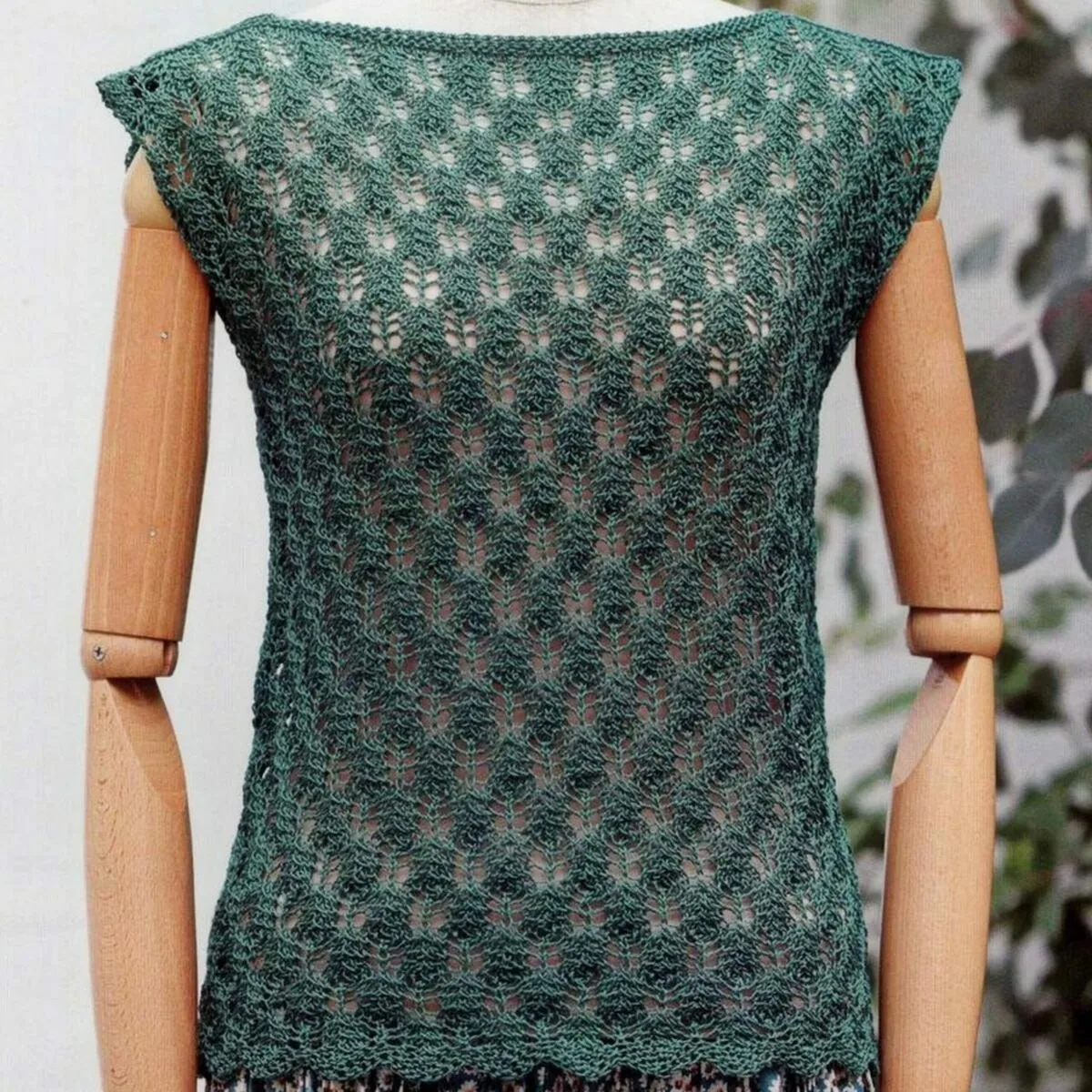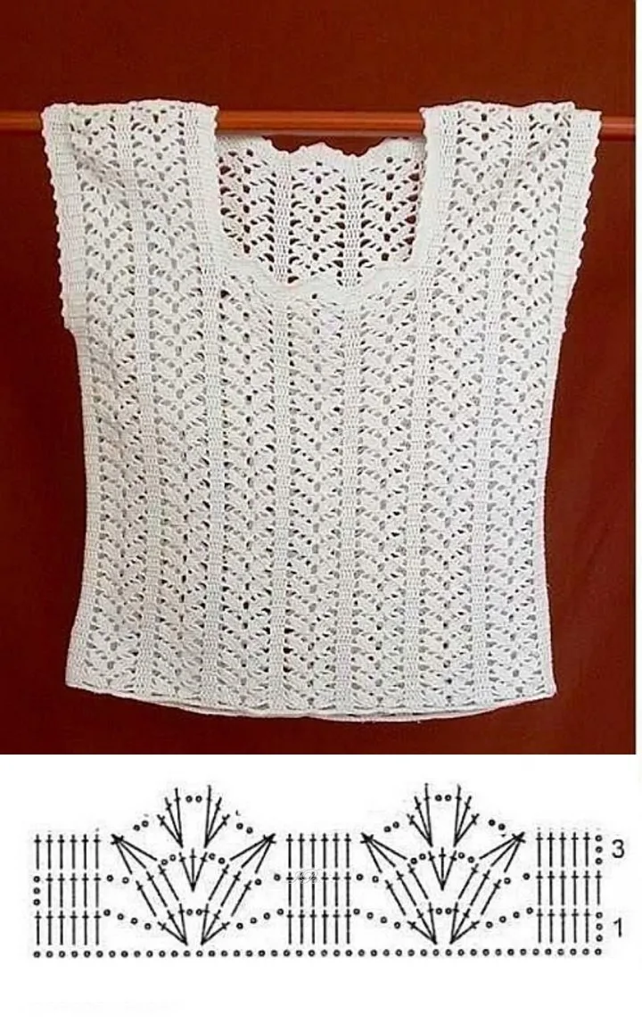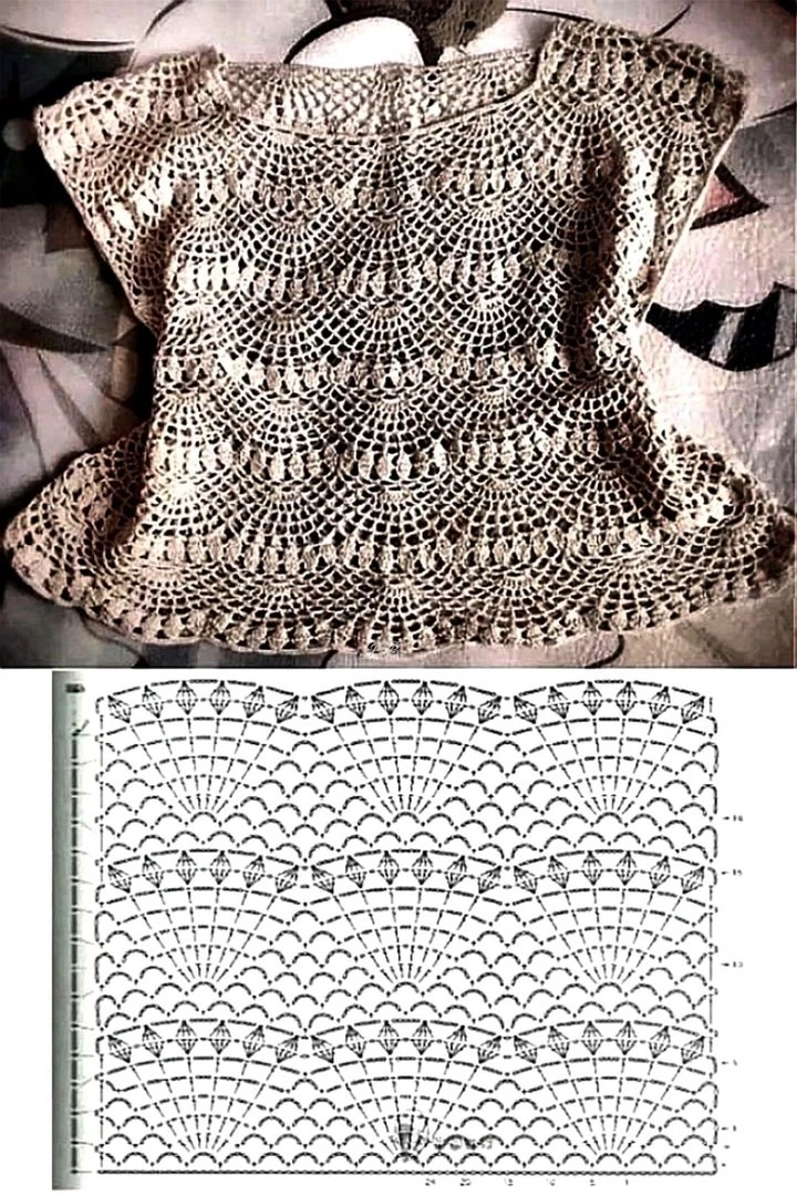 Топ крючком в технике филейного кружева с прямоугольной кокеткой.