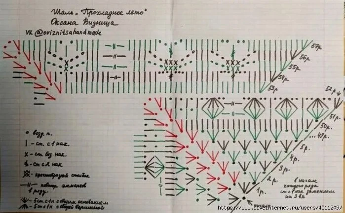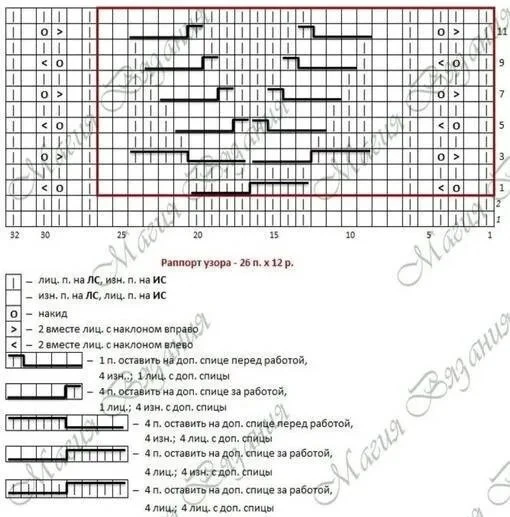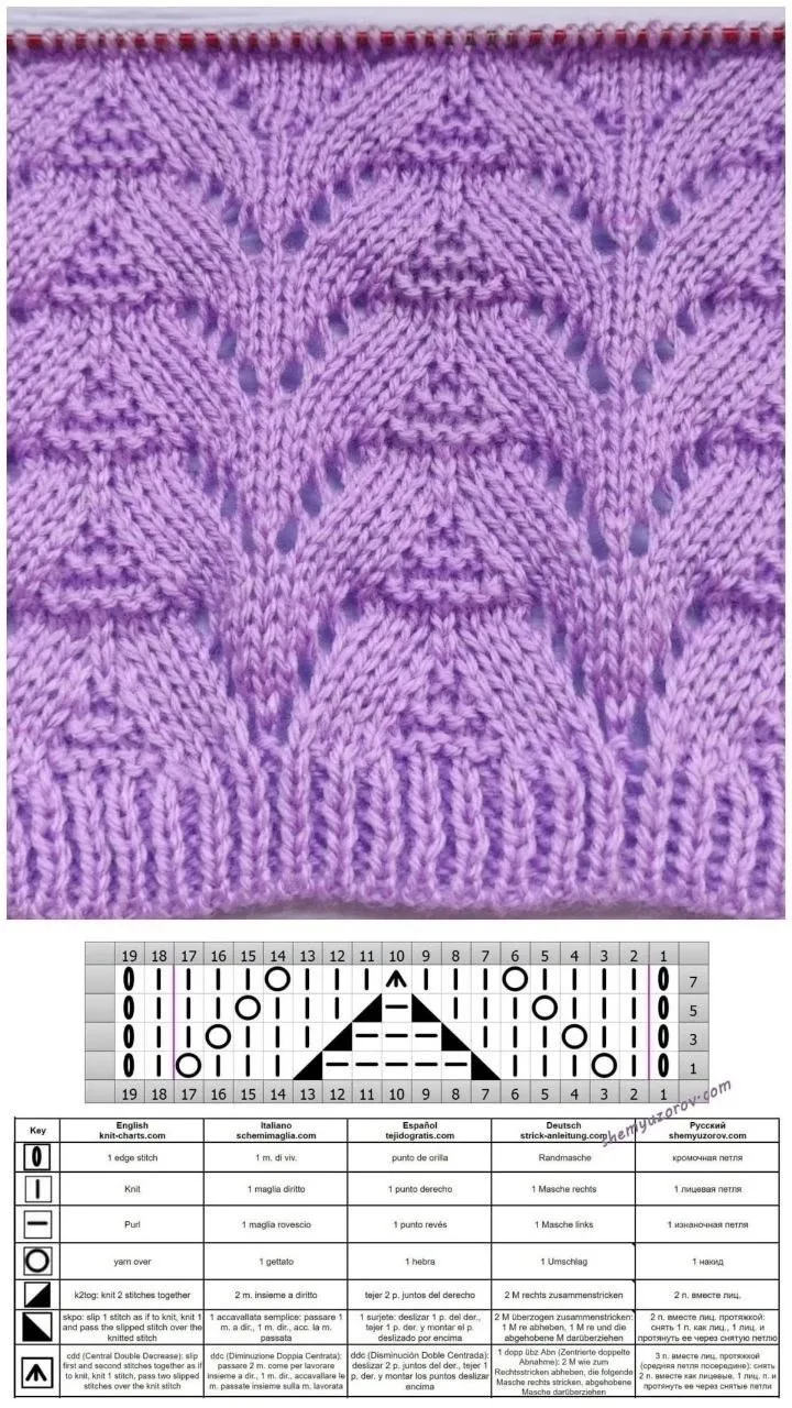 Можно вязать делая накиды в каждом ряду, а можно приспособить схему для вязания узора только в лицевых рядах, провязывая изнаночные ряды - изнаночными петлями.