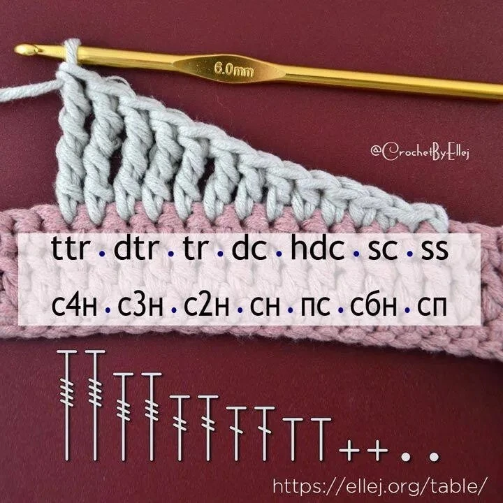 ✅ Виды столбиков и их условные обозначения на схемах для вязания крючком.
