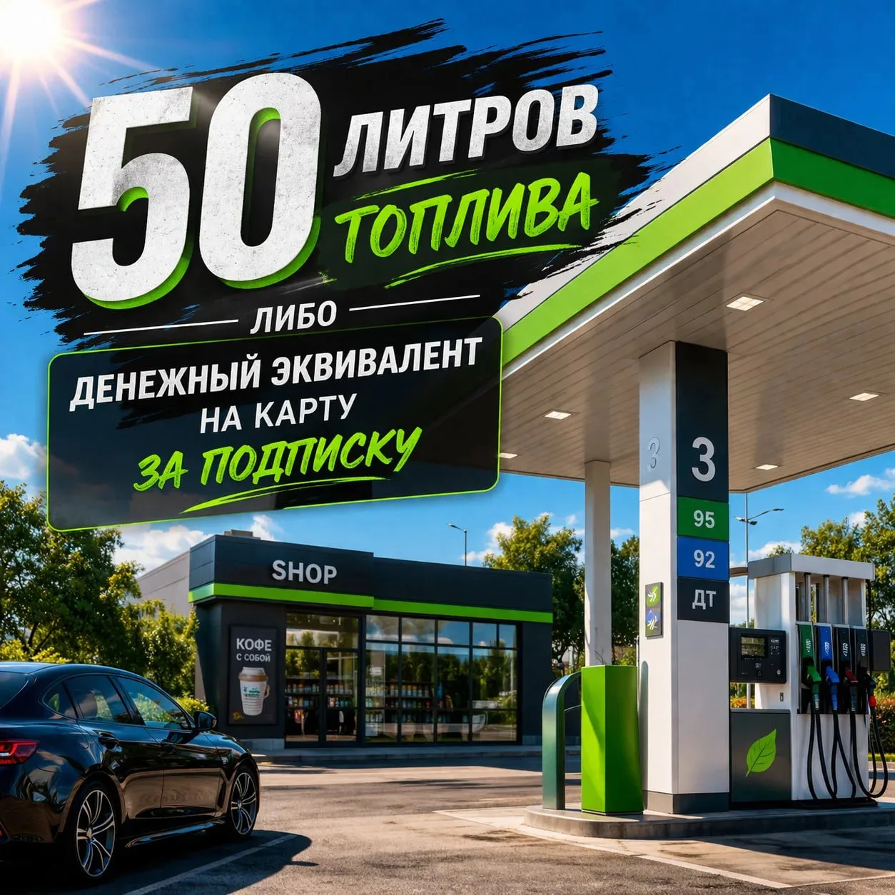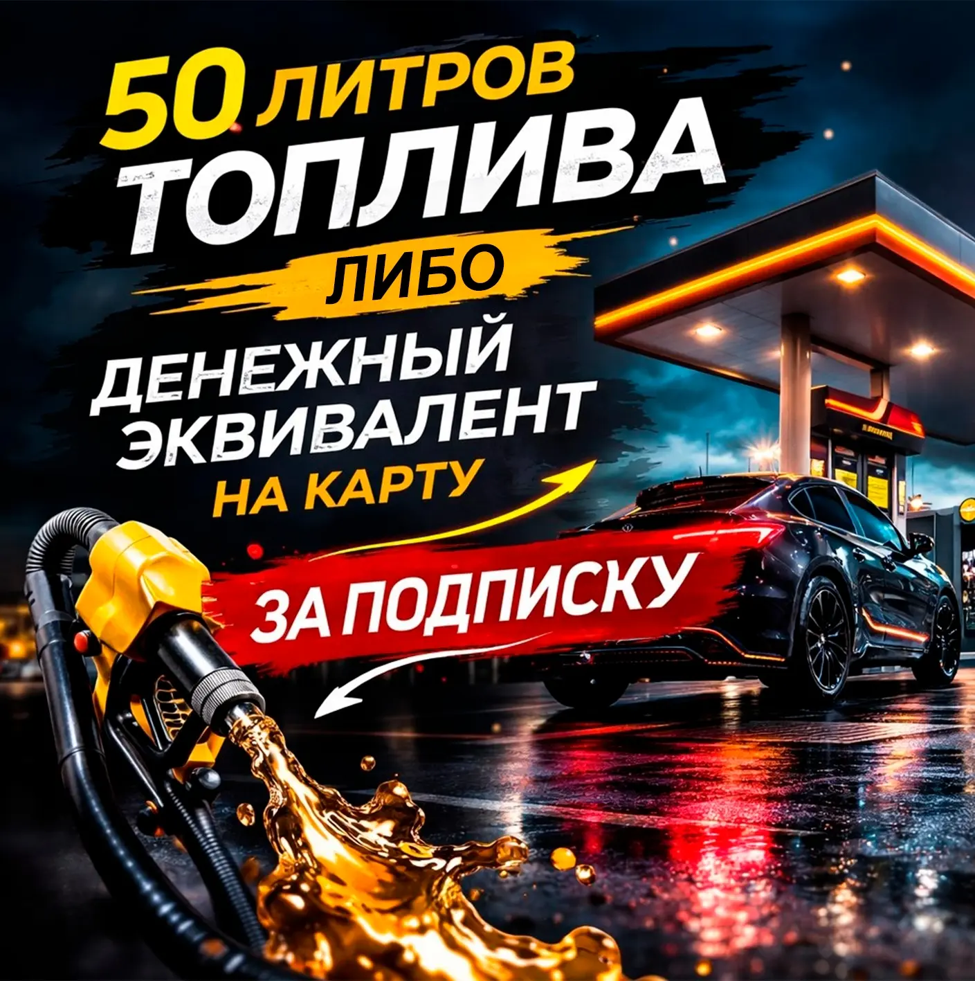 🎁 Дарим 50 литров топлива либо денежный эквивалент на карту за подписку