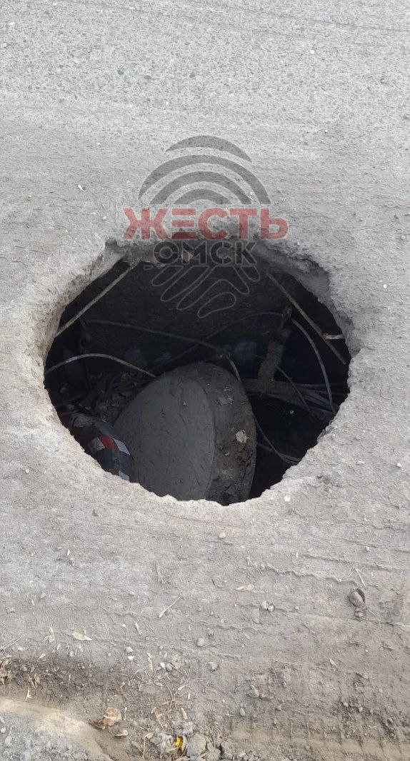 Канализационный люк провалился прямо на проезжей части на улице Кирова