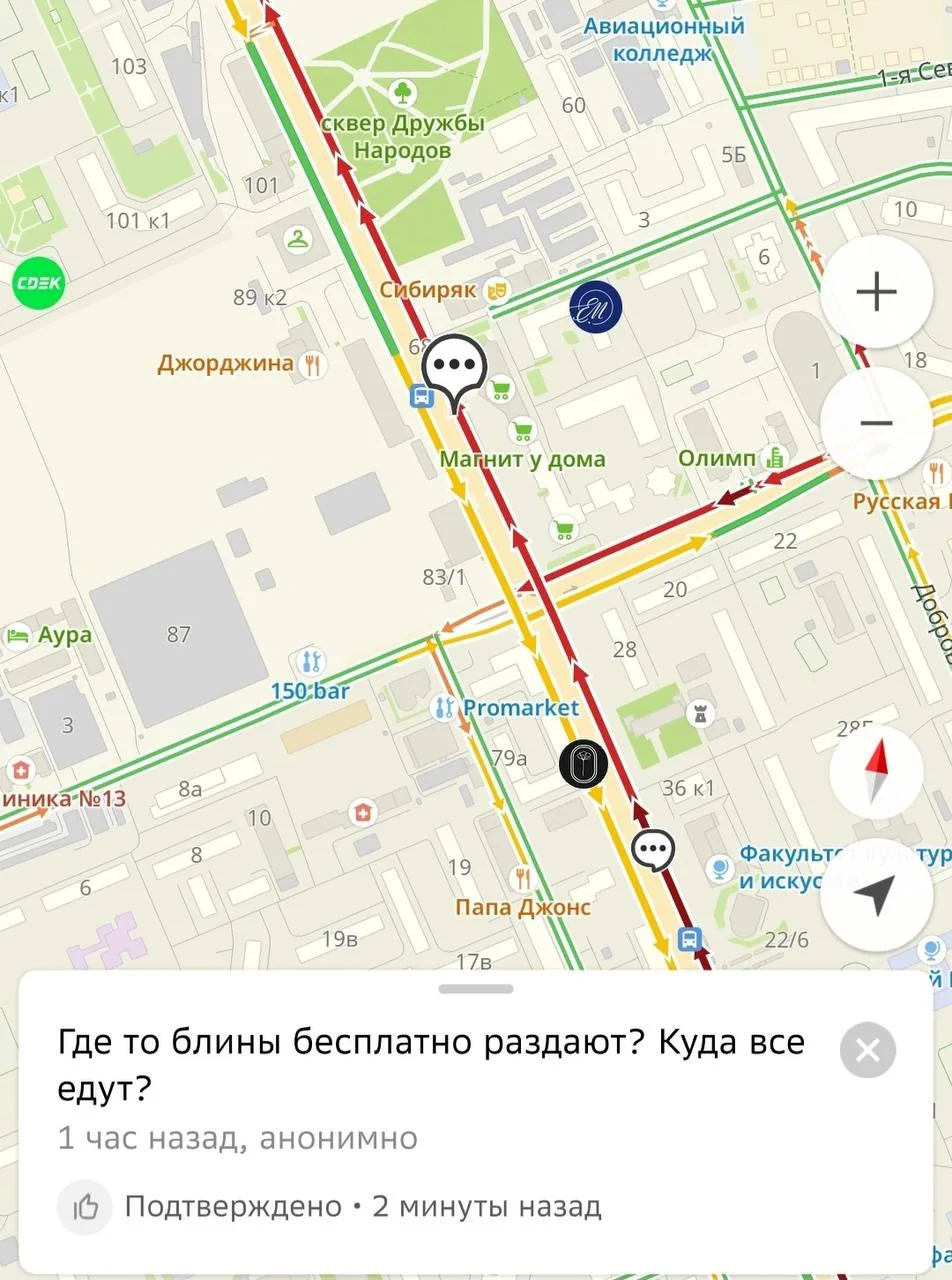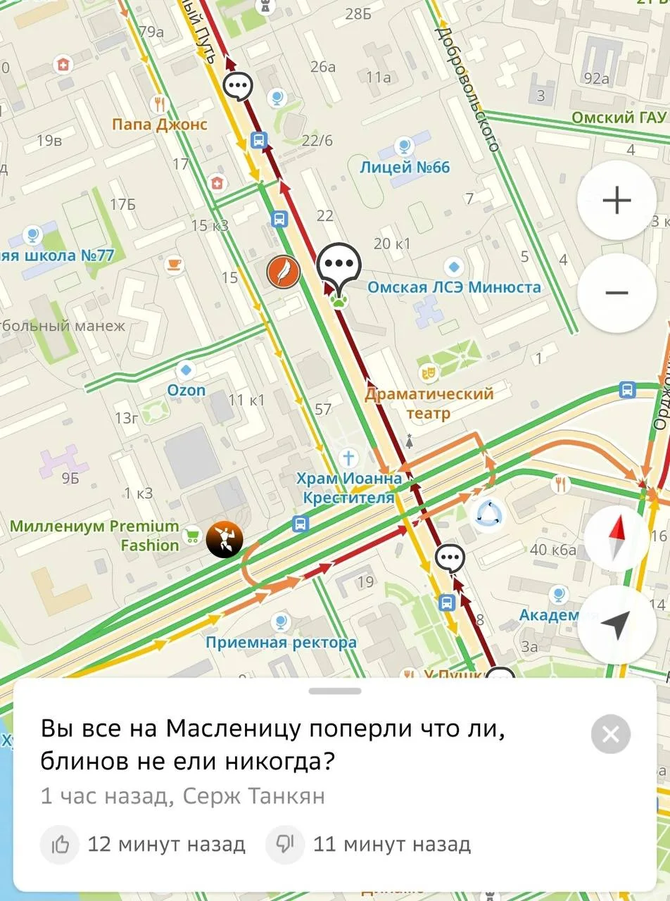 «Вы все на Масленицу поехали что-ли?» — пишут омичи в 2ГИС.