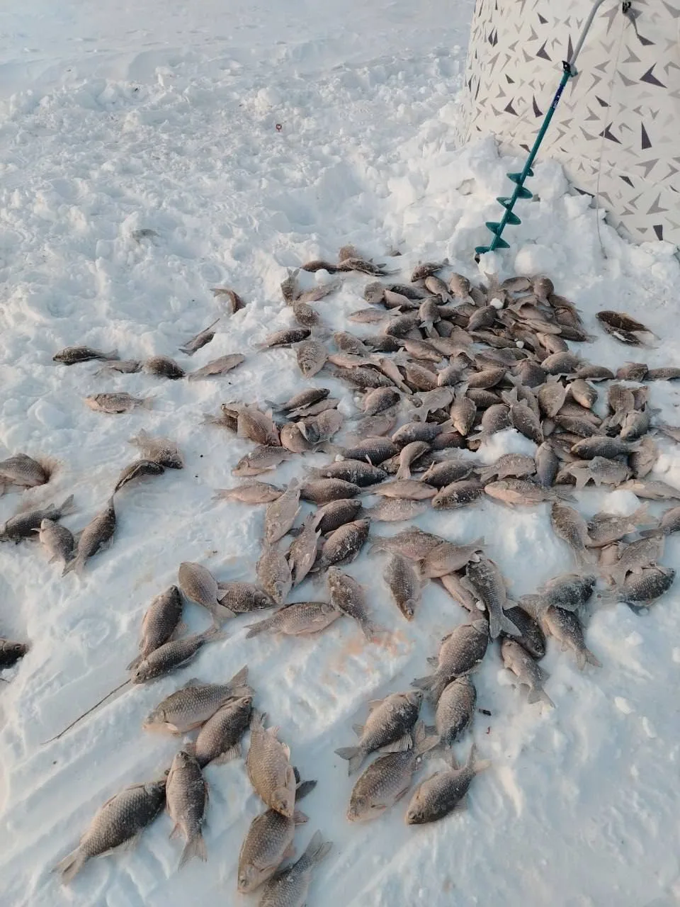 Любители зимней рыбалки поймали десятки окуней и щук на озере Салтаим в Крутинском районе.