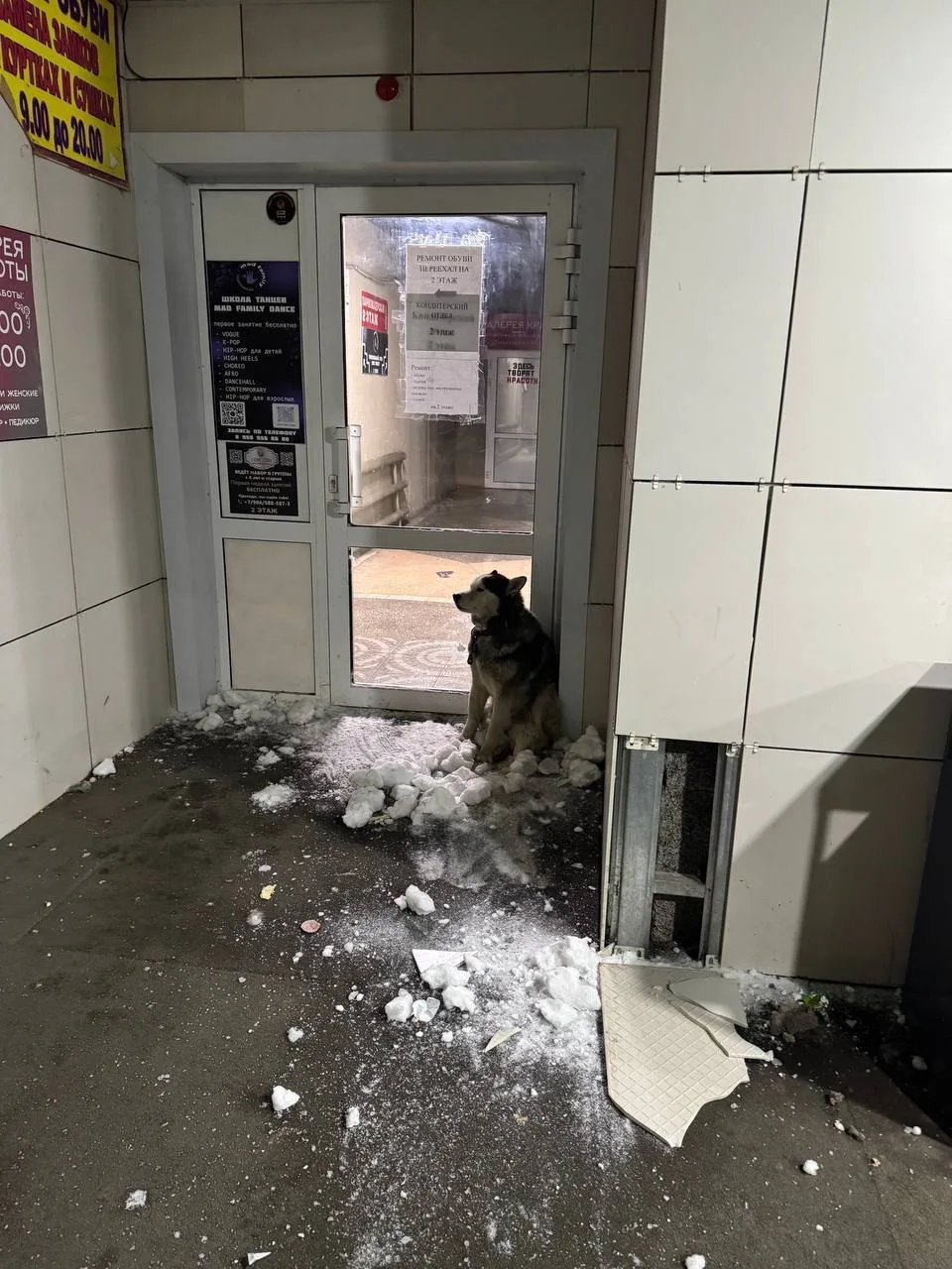 В социальных сетях появилась информация о хаски, которая несколько часов не отходила от входа в магазин на улице Омская, 158/1. Прохожие вызвали полицию. Очевидцы сняли на видео, как полицейские вместе с прохожими пытаются отогнать собаку, бросая в нее снежки.