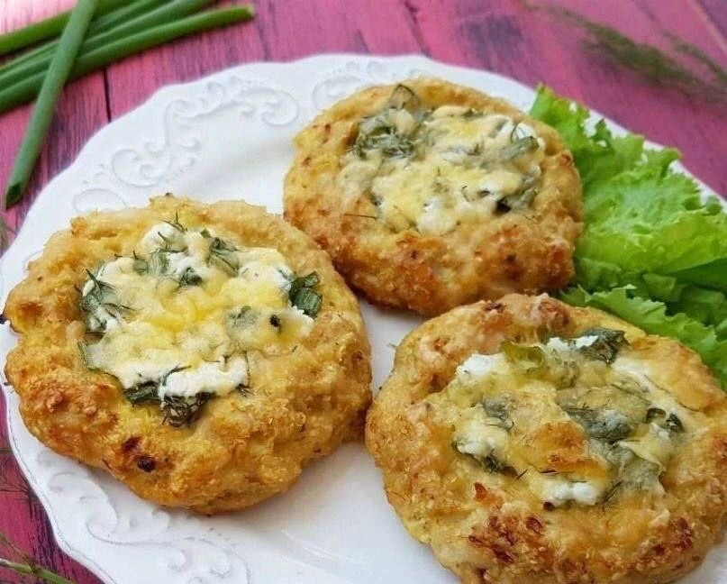 ✅Творог перемешать с зеленью, выложить в куриные корзинки, сверху посыпать сыром и еще на 10 минут в духовку.