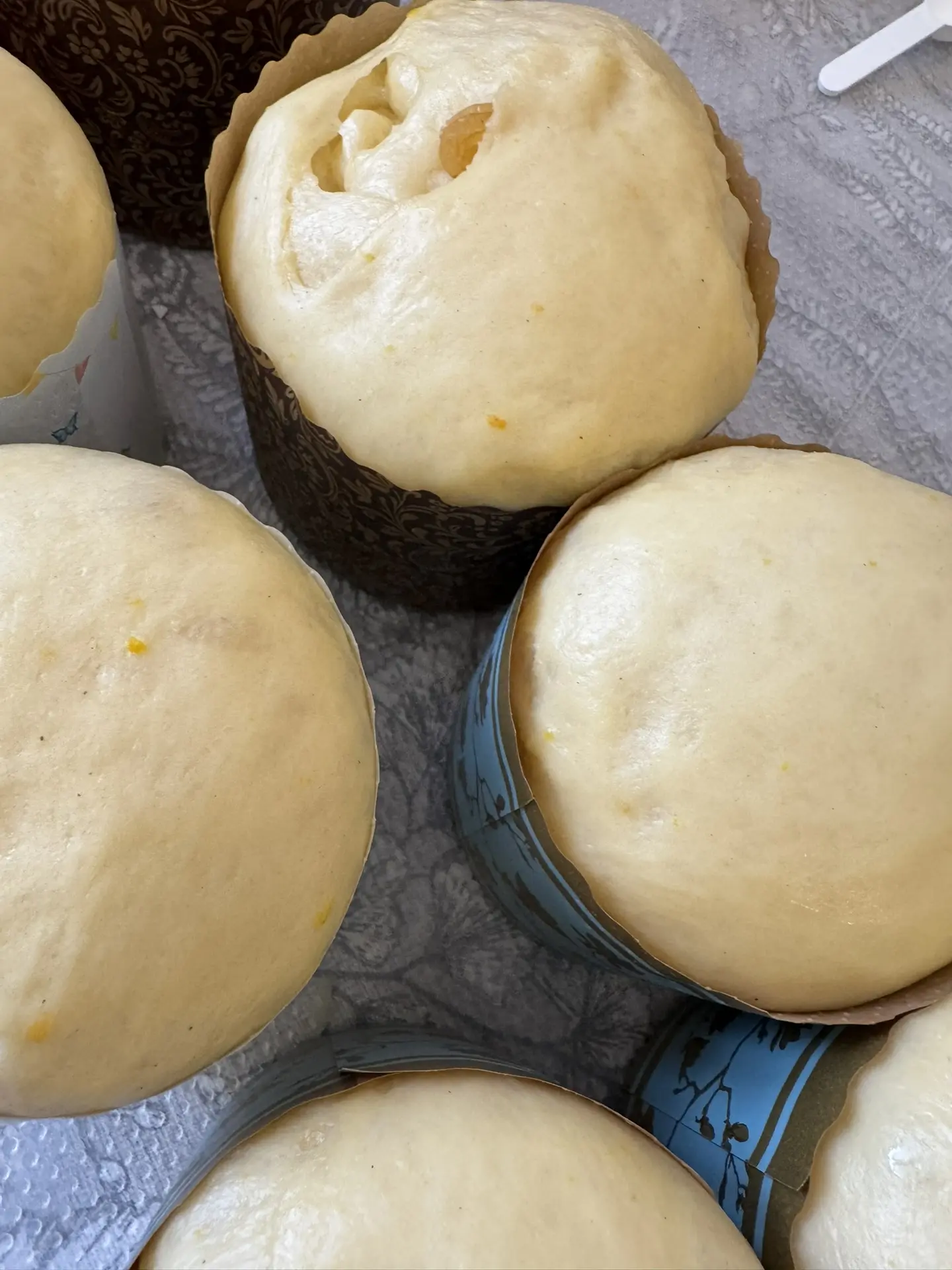 🟢 выкалываем тесто по формам(чем меньше формы,тем выше получится кулич)и в микроволновку на 3 минуты.
