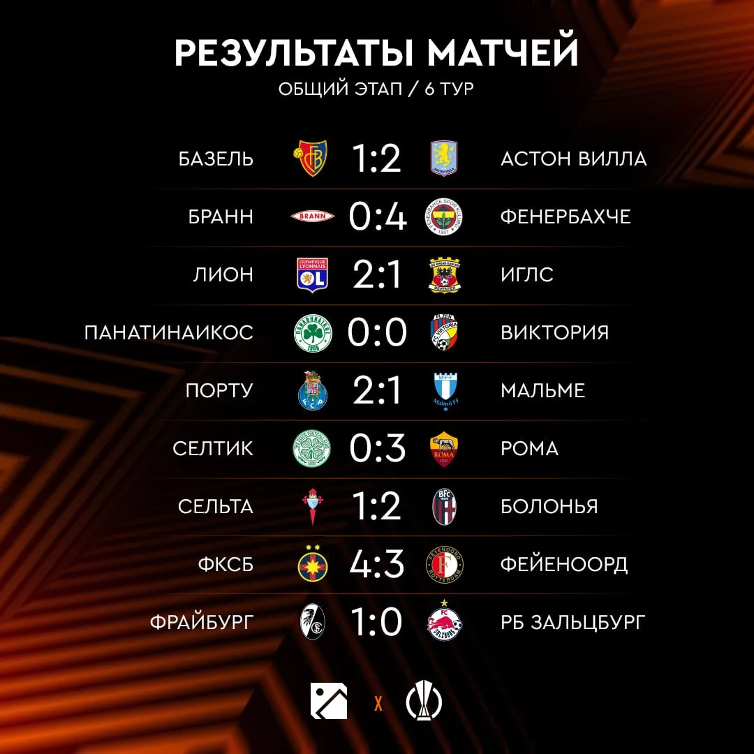 Завершили еврокубковую неделю Лигой Европы. Фиксируем результаты и ждем продолжения в январе 👀