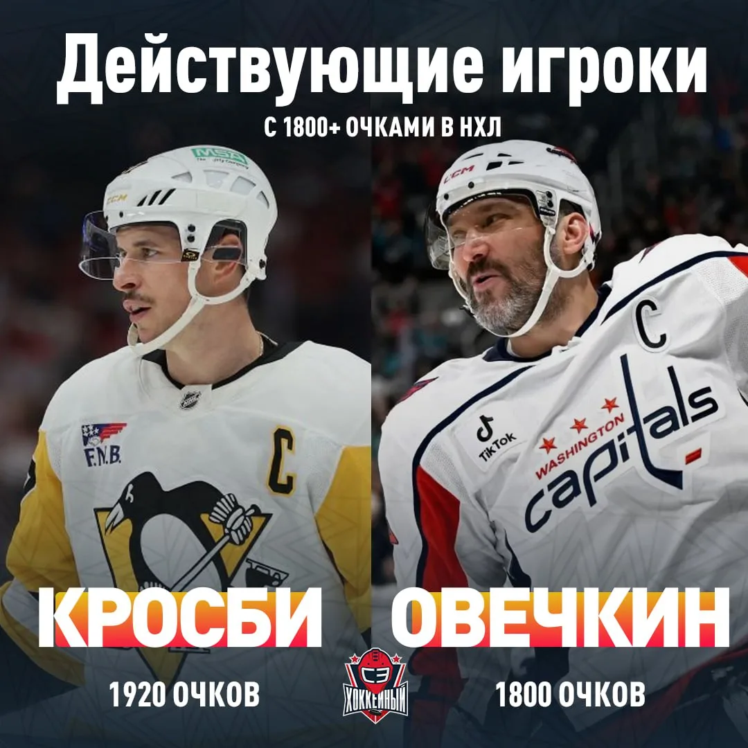 Овечкин добрался до клуба 1800+ очков и стал 11-м в списке. Кросби — седьмой. Две легенды 🔥