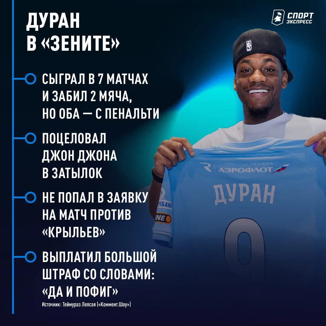 Дуран пришел в «Зенит» два месяца назад. Но его присутствие не впечатляет 🤷♂️