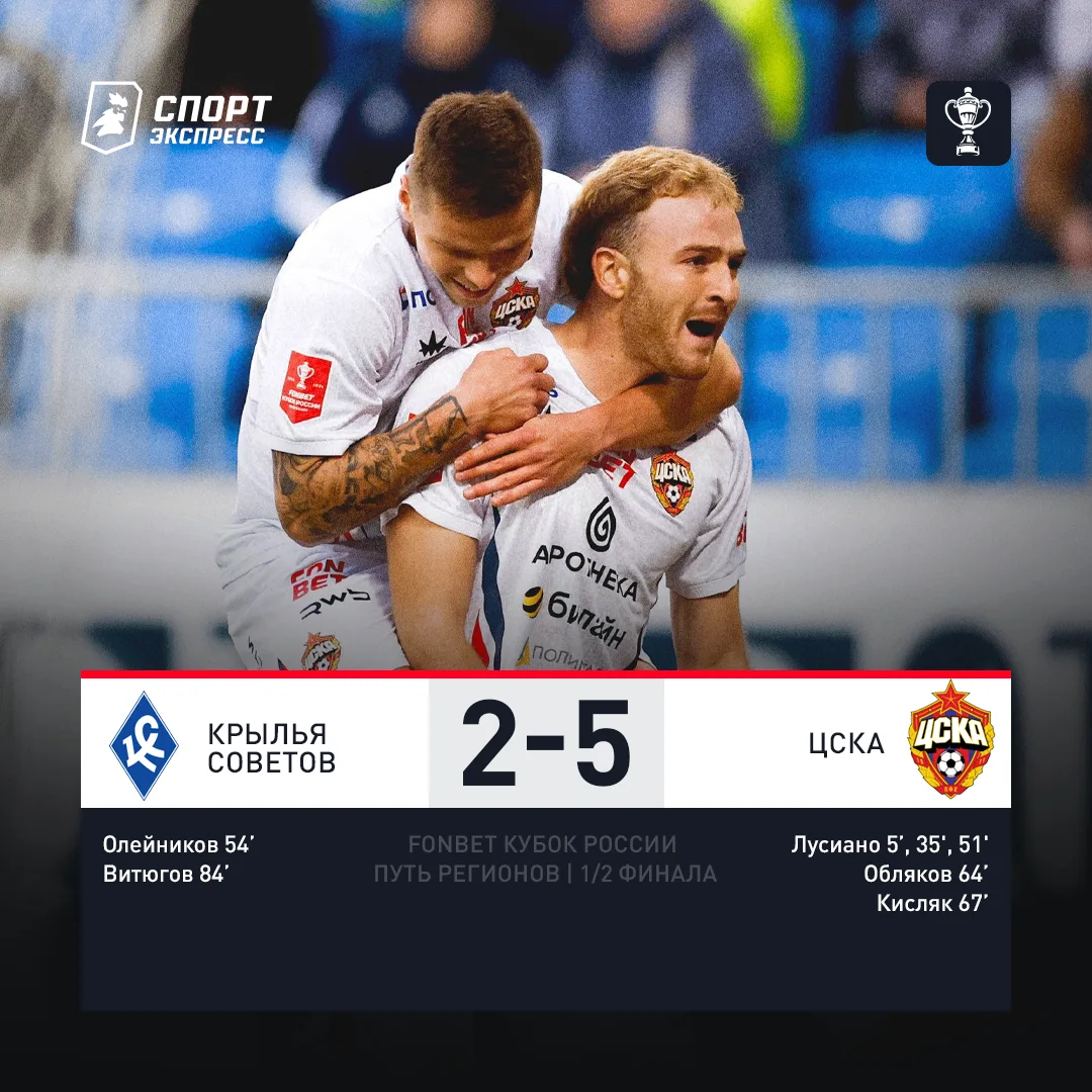 Хет-трик Лусиано, выстрел Облякова — ЦСКА летит в финал Пути Регионов 🔥