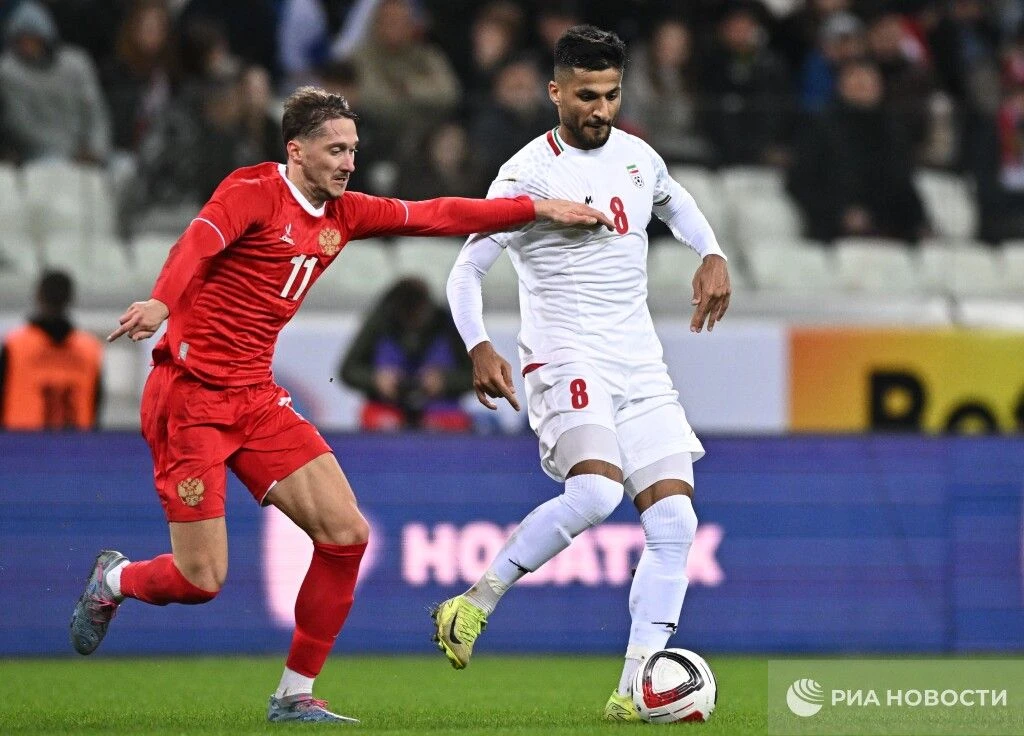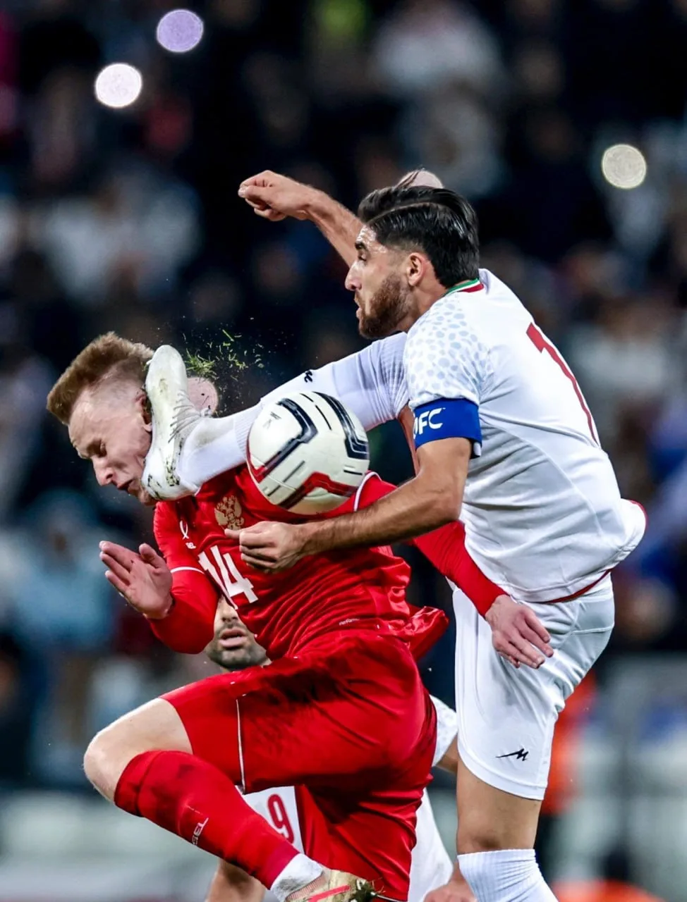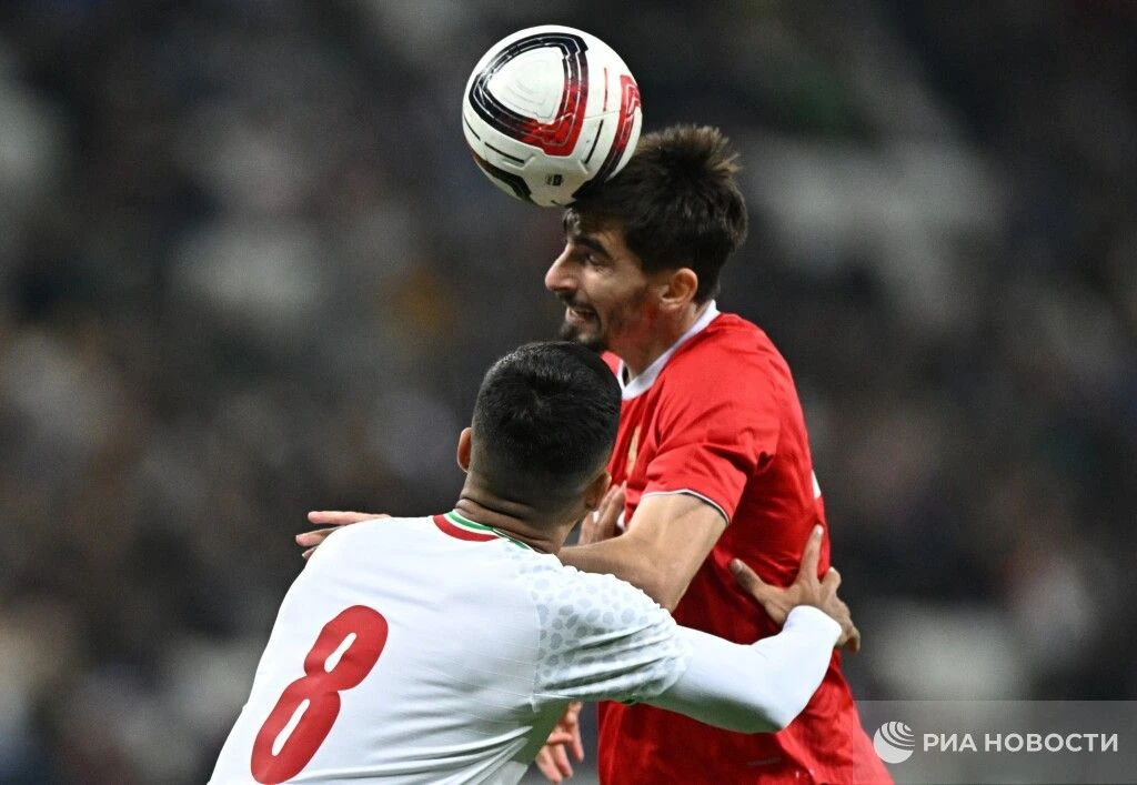 В концовке встречи иранский футболист во время борьбы за мяч попал шипами бутсы в голову Виктору Мелехину.