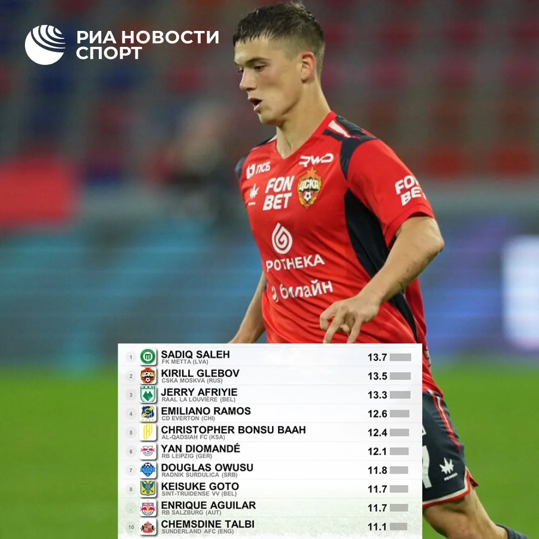 ⚽️ Глебов занял 2-е место в рейтинге футболистов до 21 года по числу ускорений за матч