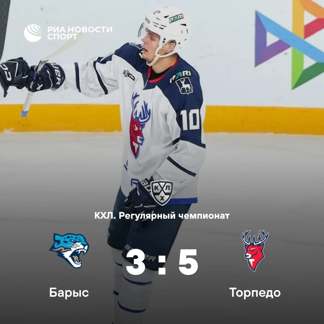 ▫️ В другом матче нижегородское «Торпедо» в гостях обыграло астанинский «Барыс» со счетом 5:3.