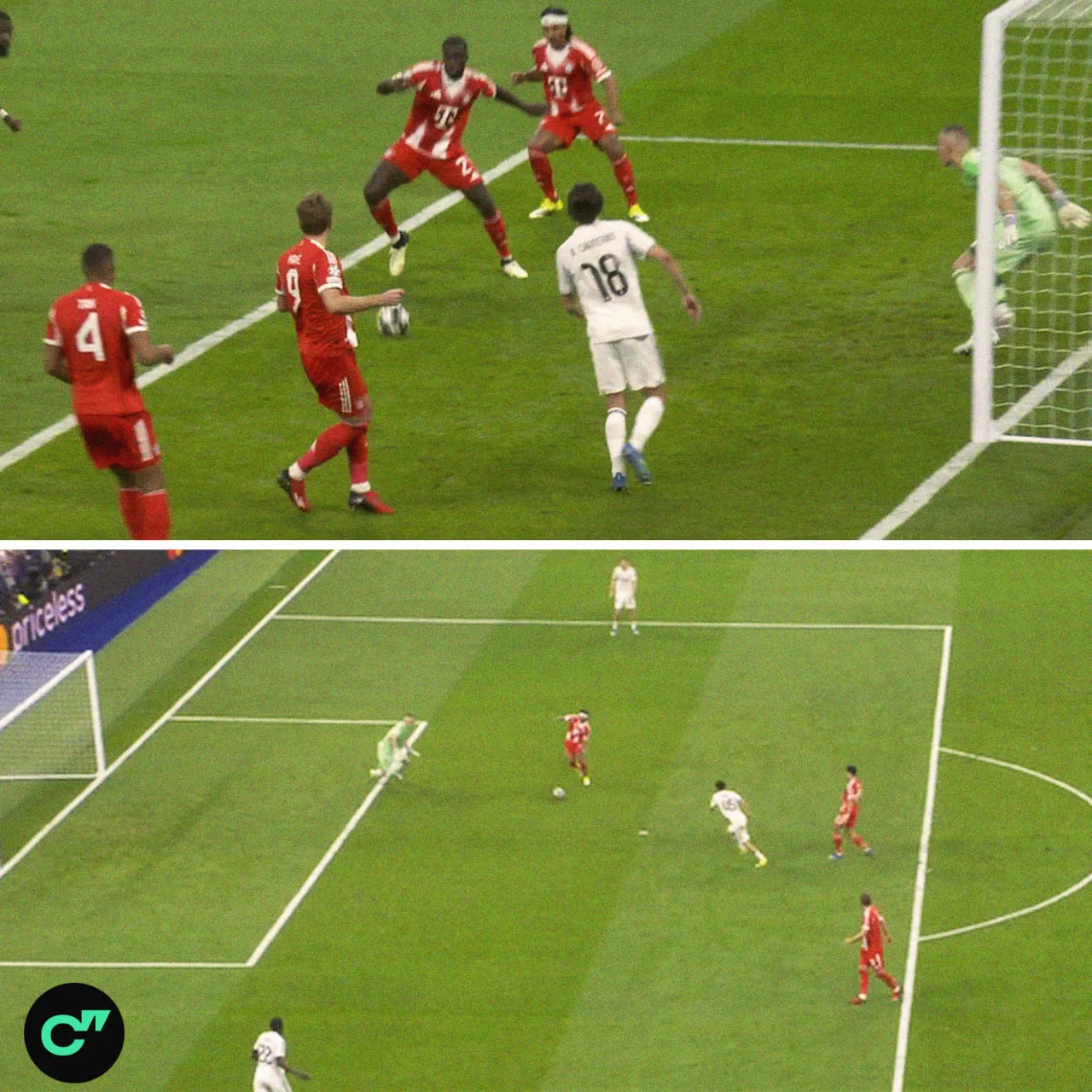 🇩🇪👏 «Реал» в концовке тайма все-таки пропустил от «Баварии» – стиляга Компани наблюдал за голом Луиса Диаса в мощнейшей ветровке!