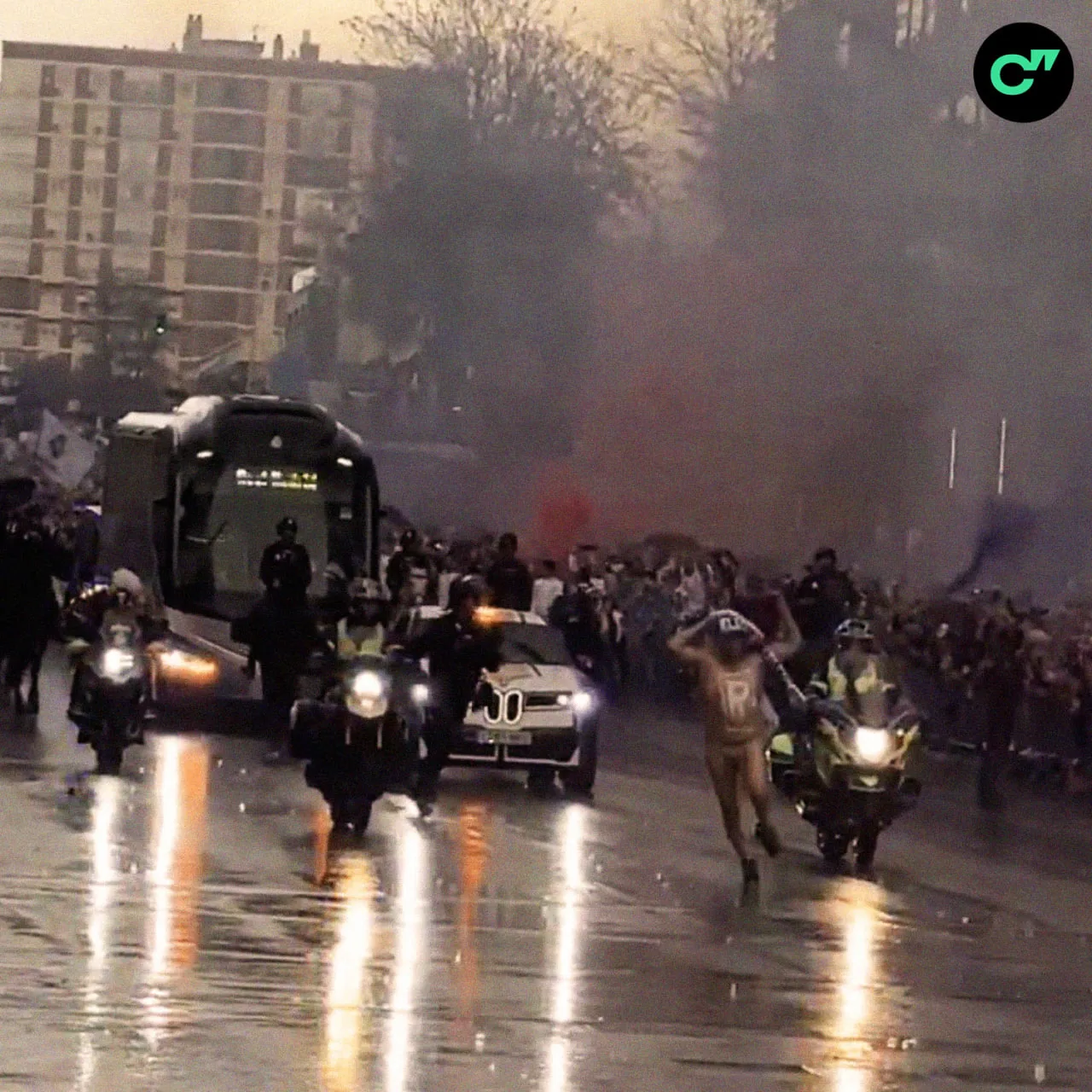 🔞🇪🇸 Голый мужик просто взял и пробежал перед автобусом «Реала», который проезжал по улицам Мадрида до «Бернабеу»