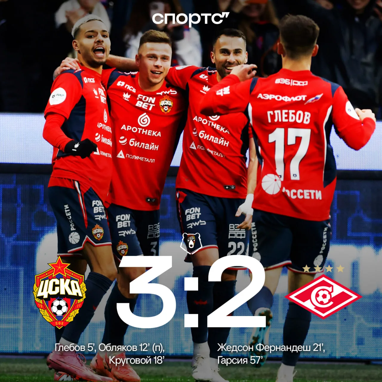 🇷🇺 Второе ярчайшее московское дерби подряд: «Спартак» проигрывал 0:3 к 18-й минуте дерби и почти спас игру, но ЦСКА все-таки забрал победу