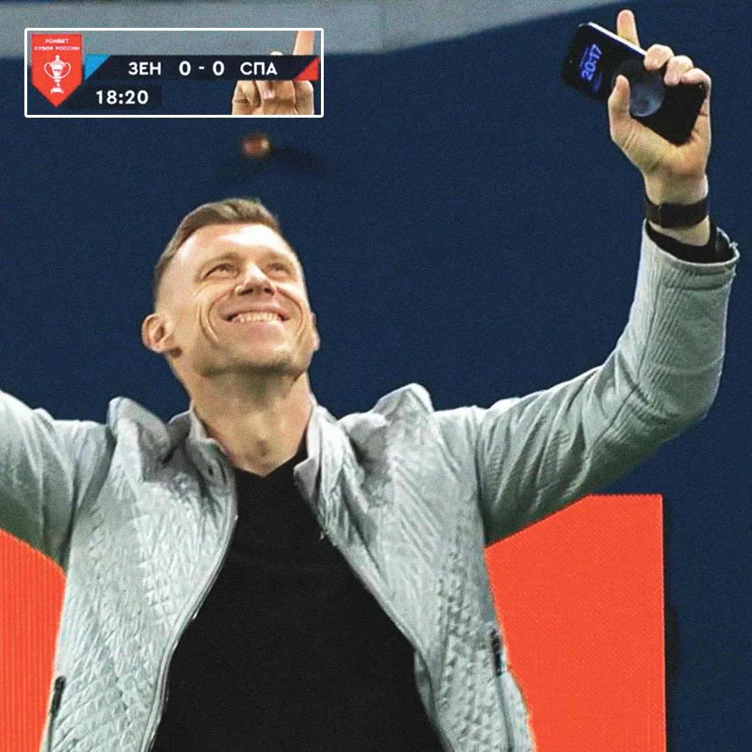 ⏳ 🤔 Болельщики гадают, почему часы Павла Погребняка на телефоне показывали время 20:17 на 19-й минуте матча «Зенита» и «Спартака», который начался в 20:45