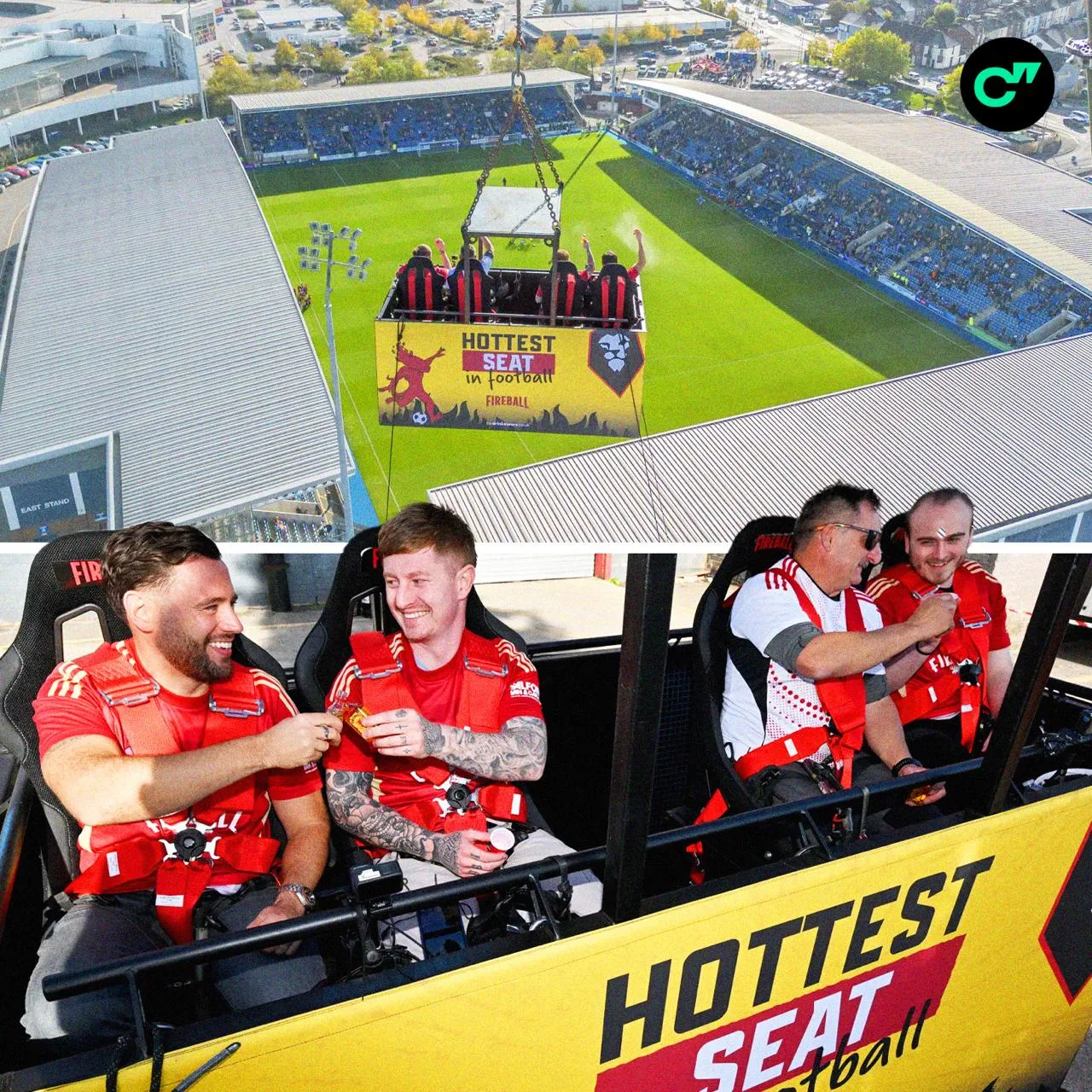 🔭🍻 Фанаты «Солфорда» смотрели матч на высоте 50 метров в специальной кабине, которую подвесили с помощью башенного крана – такую акцию клуб из четвертого дивизиона провел в 40-летнюю годовщину запрета алкоголя на трибунах