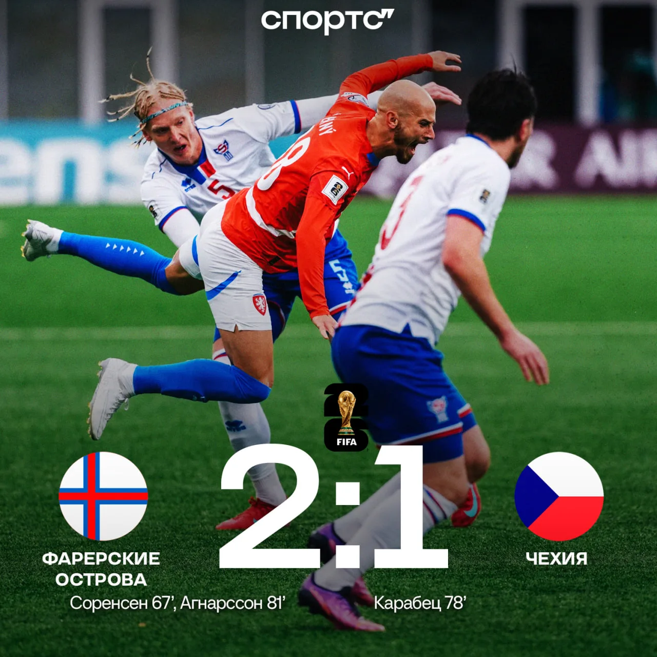 🇫🇴😳 Фарерские острова с 136-го места рейтинга ФИФА сенсационно победили Чехию! Прямо сейчас команда идет на третьем месте в группе, отставая от чехов на 1 очко