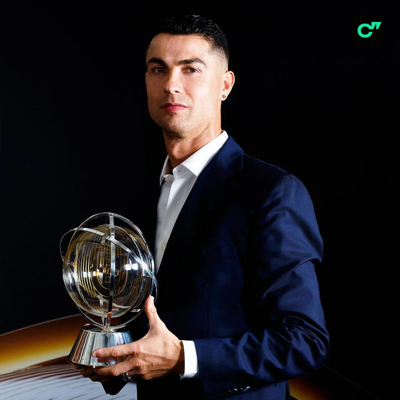 💀 Роналду прямо со сцены произнес рекламный текст, когда ему вручали премию за 22-летнюю карьеру в сборной: