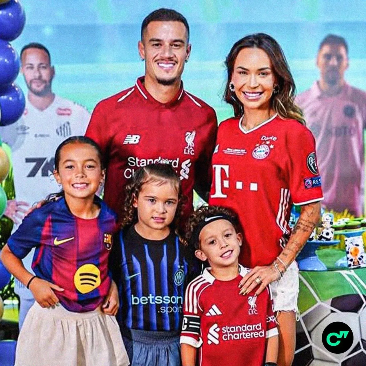 🏴🇧🇷 Филиппе Коутинью нарядил всю семью на день рождения сына в майки своих бывших клубов – сам бразилец предпочел надеть ретро-джерси «Ливерпуля»