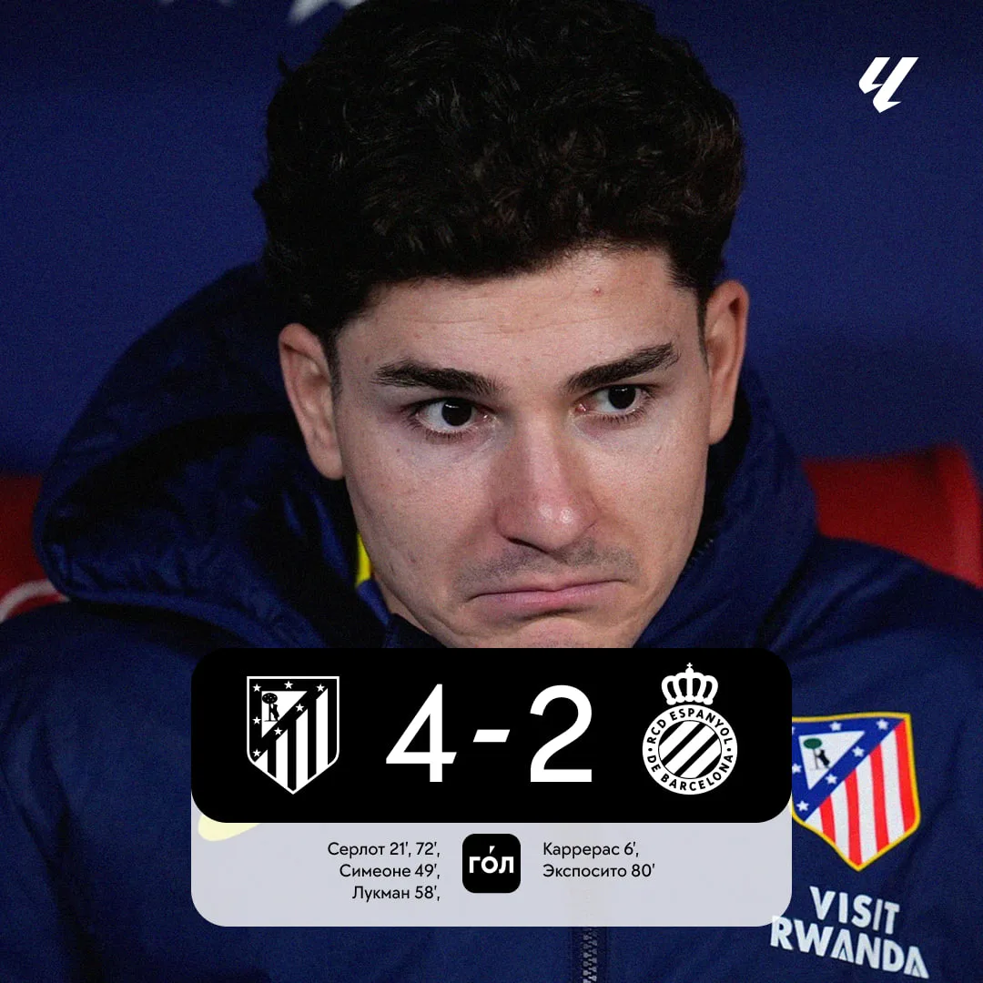 🇦🇷 «Атлетико» впервые за месяц победил в Ла Лиге, но вновь без гола Хулиана Альвареса – у аргентинца безумная серия из 14 игр без мячей в чемпионате