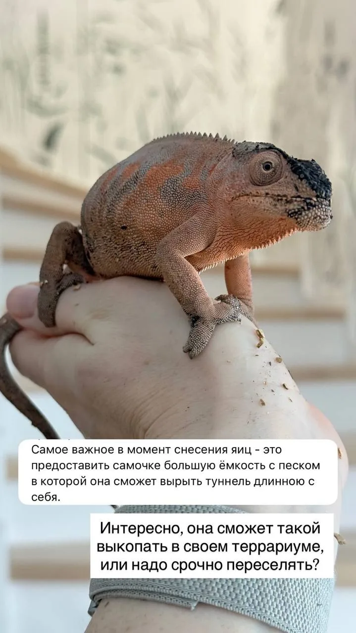 Такие у нас тут Цапьи дела. Волнуюсь теперь, как все пройдет и пройдет ли. Пока оставила в террариуме, если через пару дней не найдет место для кладки, буду делать отдельный дом с песком 🫠