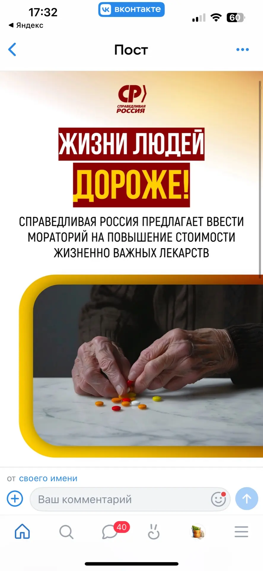 ✅ Политик отметил, что больнее всего такие скачки цен ударяют по ветеранам, пенсионерам, участникам СВО, инвалидам и людям с хроническими заболеваниям. Заморозка цен на лекарства поможет этим гражданам избежать непредвиденных расходов и в целом замедлит инфляцию в фармацевтическом секторе.