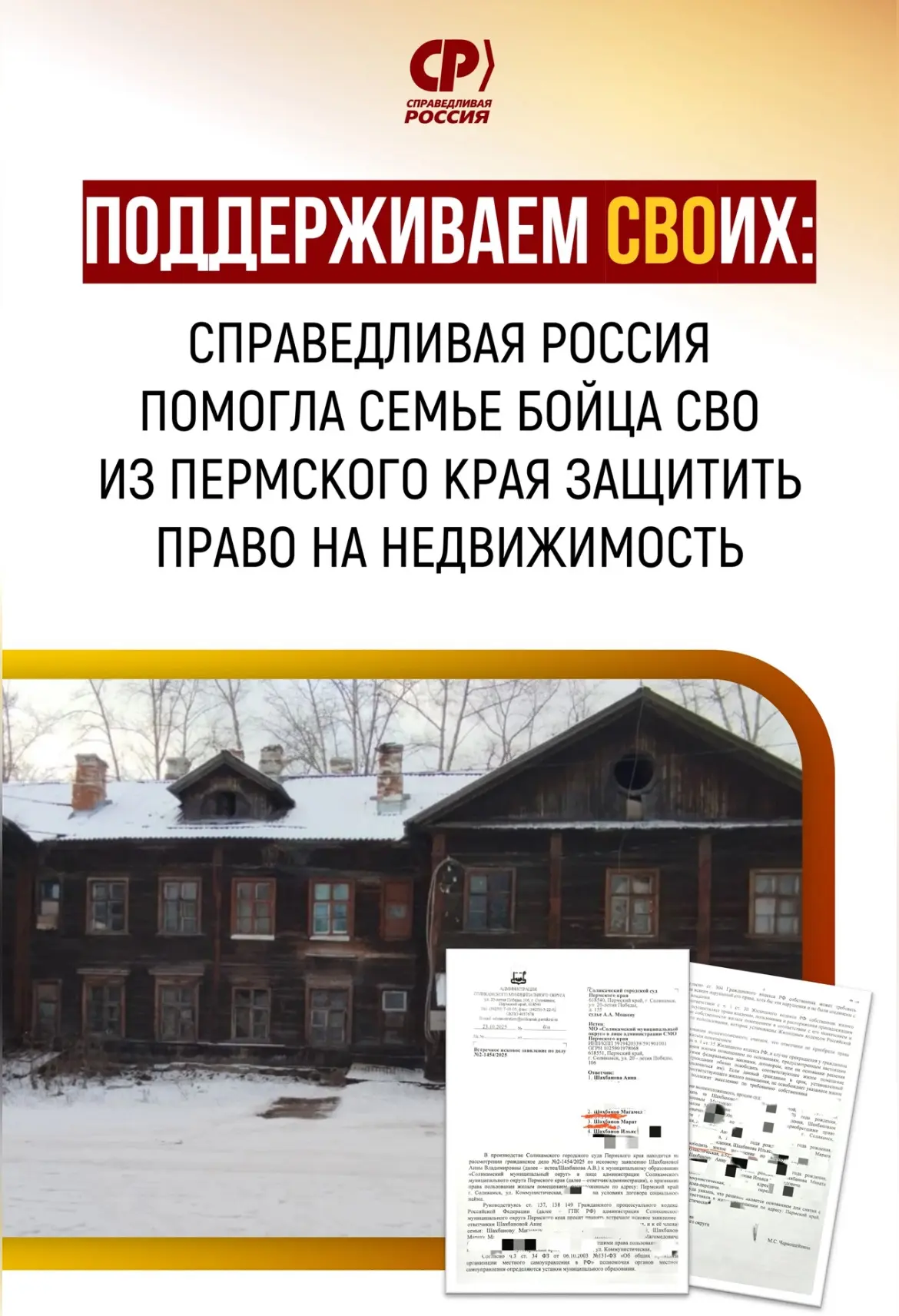 ⚖ СПРАВЕДЛИВАЯ РОССИЯ помогла семье бойца СВО из Пермского края защитить право на недвижимость