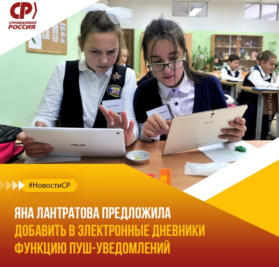 🤳 Яна Лантратова предложила добавить в электронные дневники функцию пуш-уведомлений.