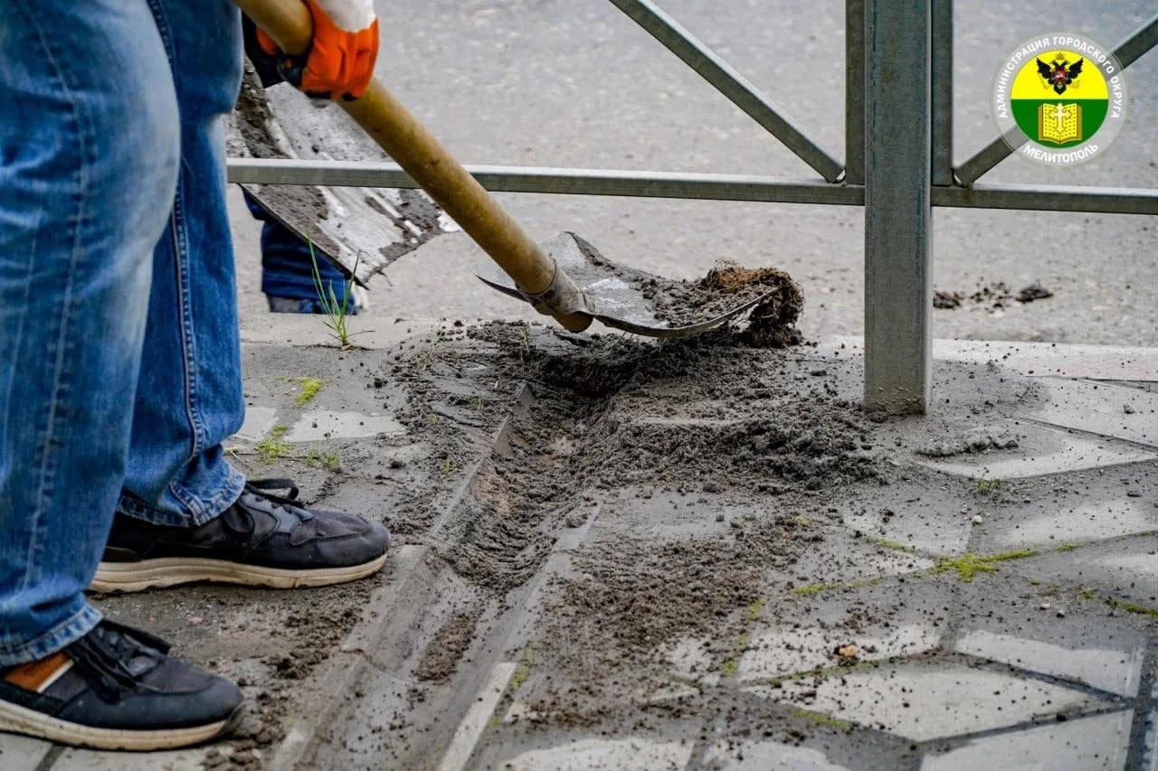 Сотрудники МКУ «Благоустройство» очистили бордюры и тротуарную плитку на проспекте Богдана Хмельницкого