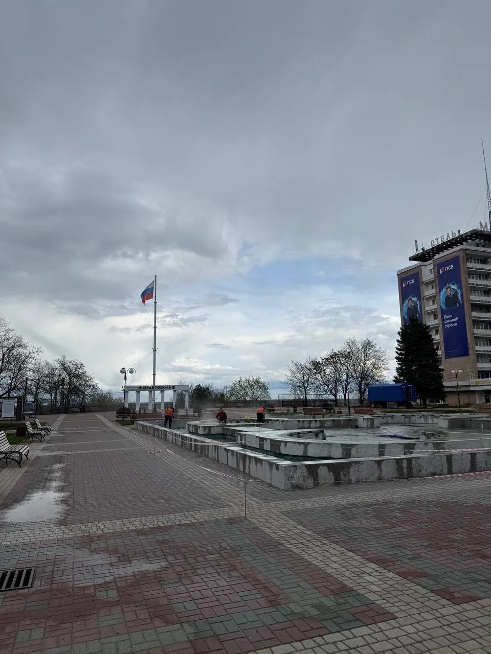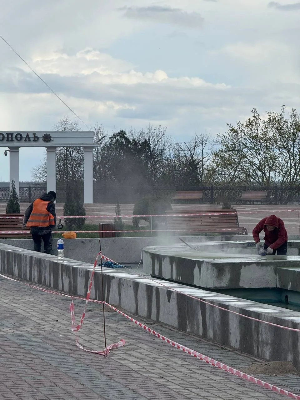 ⛲️ На площади во всю идут работы по восстановлению фонтана