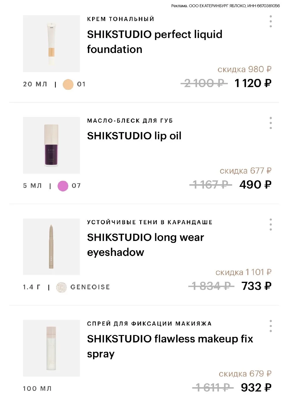 SHIKstudio: тени-спарклы, пудра, скульптор и другая косметика со скидками до 60% 🔥🔥