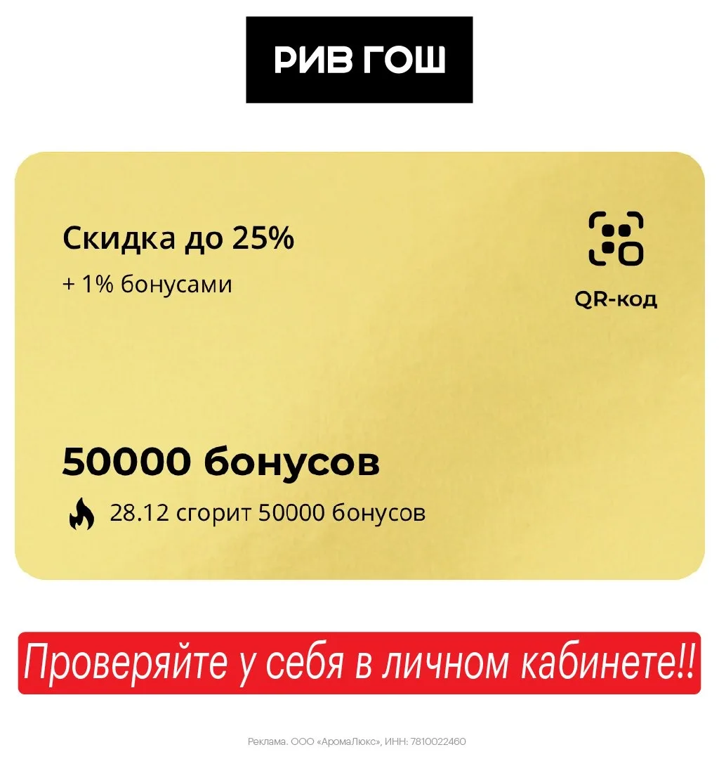 С 25 по 28 декабря успейте купить подарки близким и порадовать себя приятными скидками в РИВ ГОШ по промокодам: