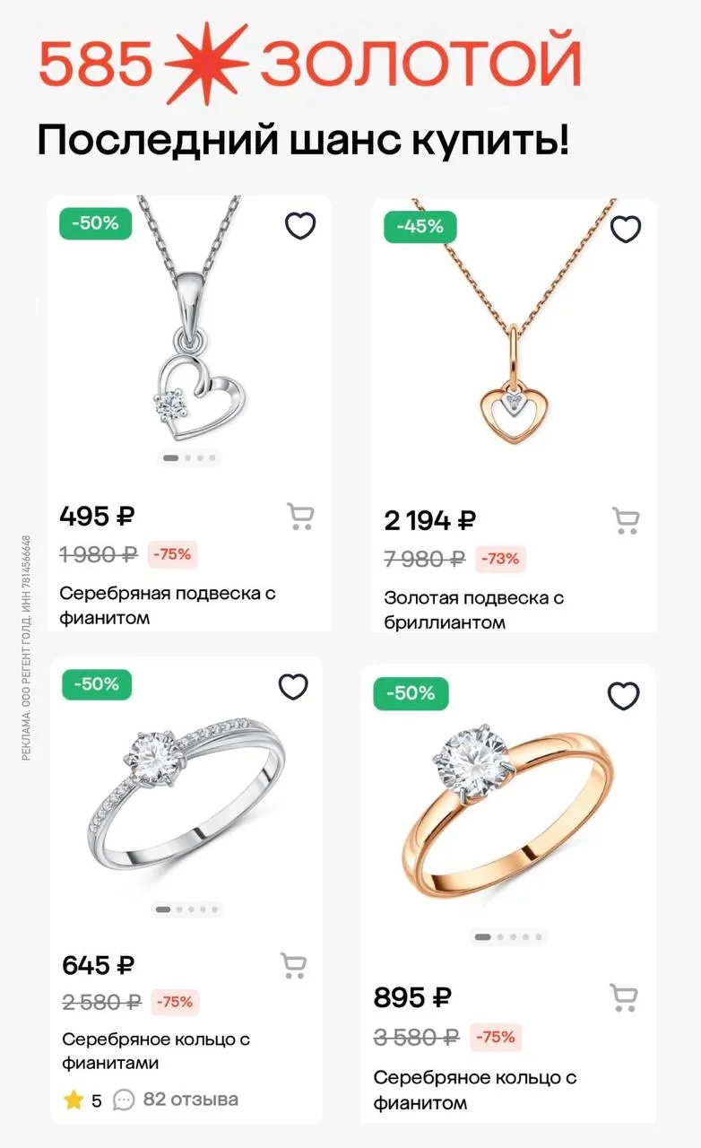 В 585 ЗОЛОТОЙ ПОСЛЕДНИЙ ШАНС КУПИТЬ СЕРЕБРО И ЗОЛОТО СО СКИДКАМИ