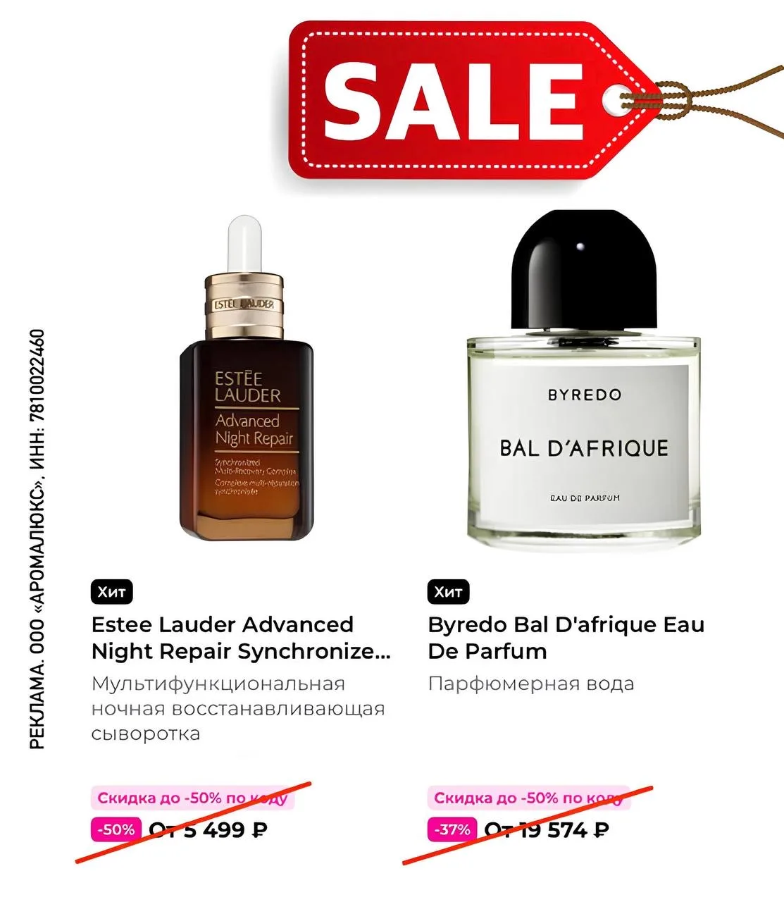 Реклама. ООО «АромаЛюкс», ИНН: 7810022460