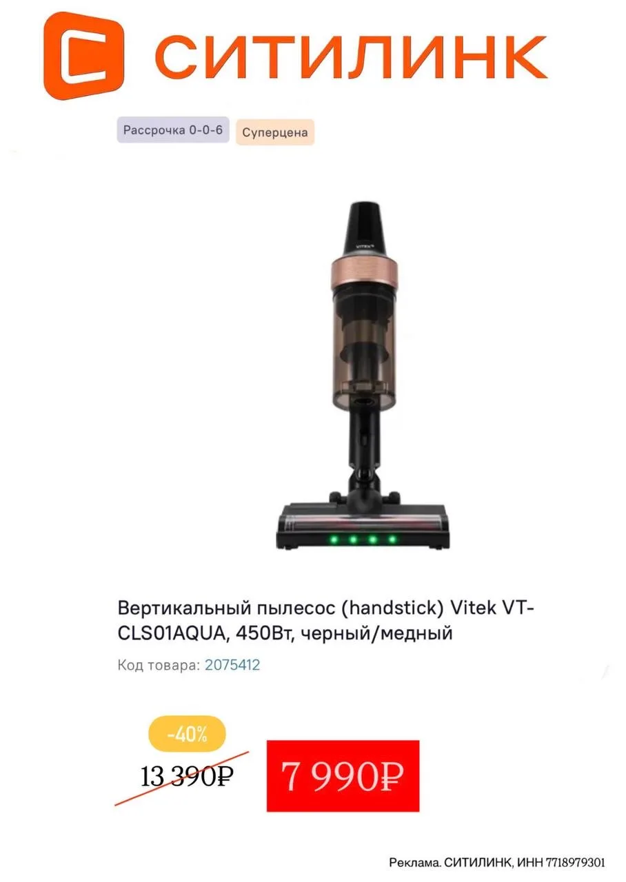 Реклама. СИТИЛИНК, ИНН 7718979307