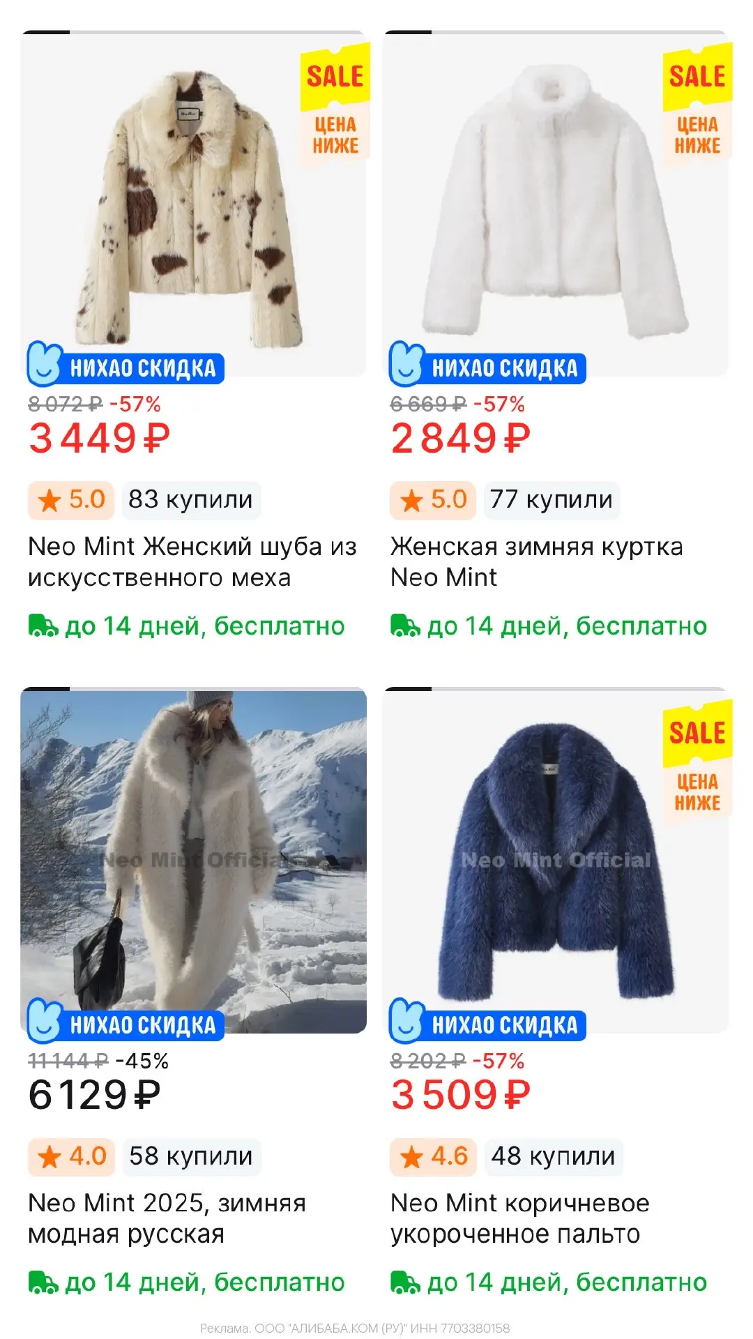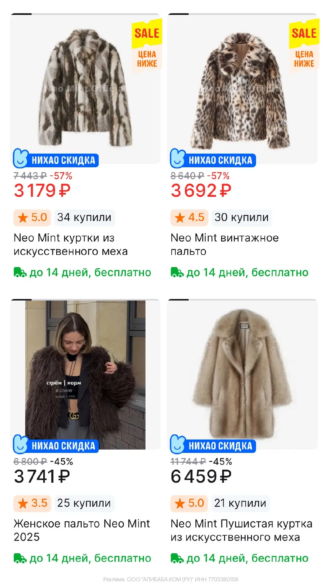 На Aliexpress большой выбор шуб из экомеха со скидками до 5️⃣6️⃣%