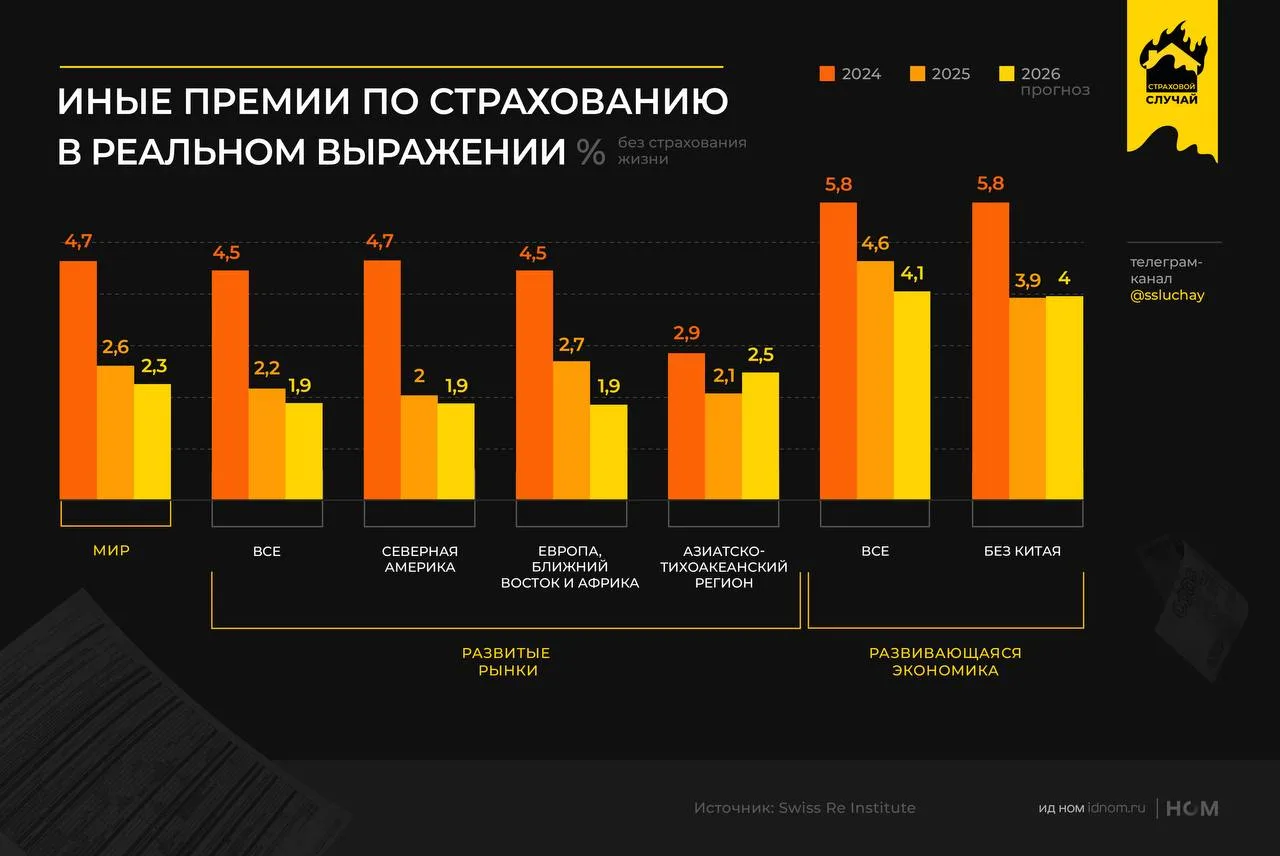 - Ставки продолжат падать. Продавать маржинальные продукты в условиях такой высокой конкуренции станет сложно как никогда: рынок переполнен конкурентами, рост премий non-life замедляется во всём мире. Страховщики буквально трижды в неделю переписывают отчёты о доходах из-за меняющихся условий.