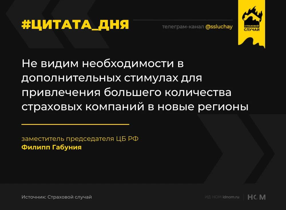 По словам Габунии, регулятор мониторит ситуацию с доступностью страхования в новых регионах и им все-все нравится.