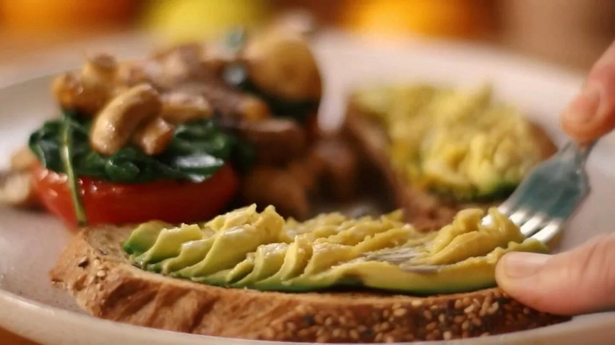 8. Разогретый авокадо разомните вилкой на горячем тосте.