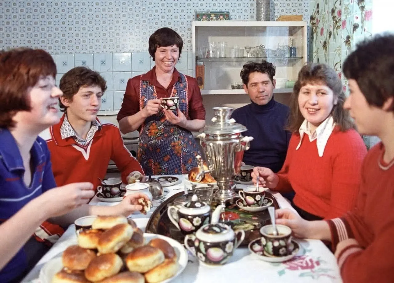 Доброе утро!. Чаепитие по случаю новоселья, в районе Тропарёво на юго-западе Москвы. 1982 год.