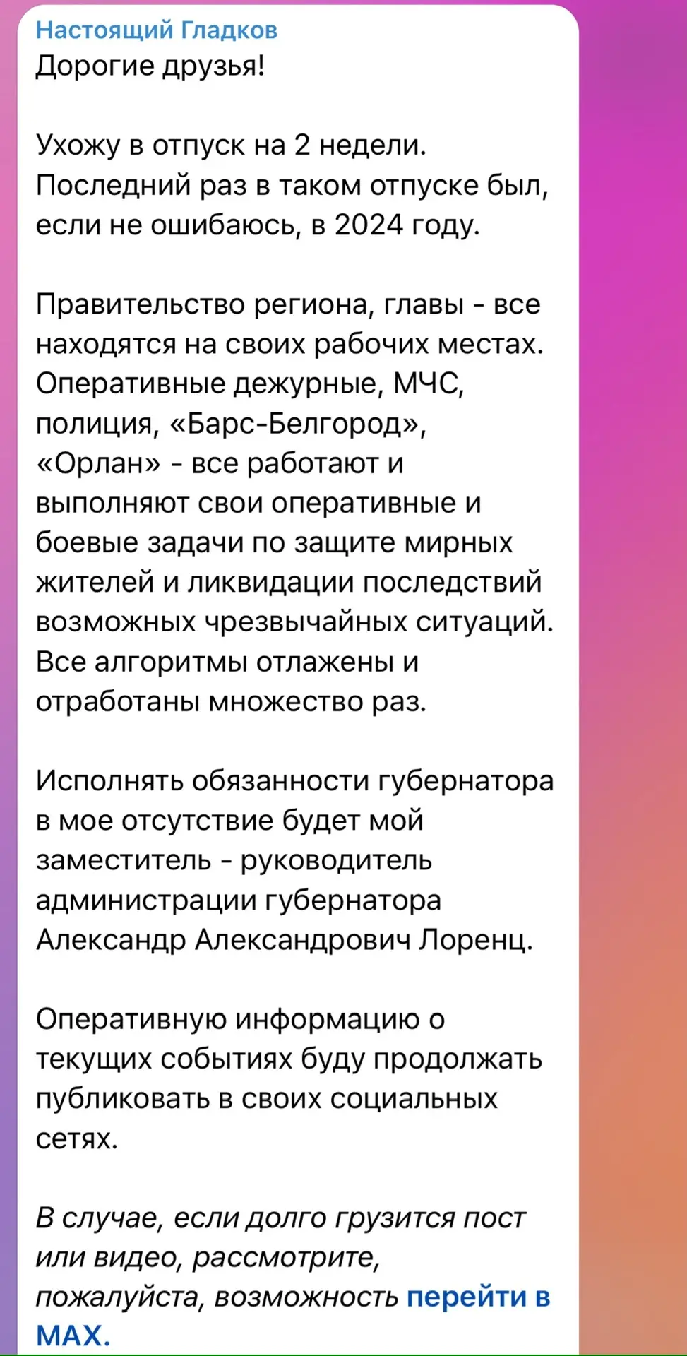 🤳Вячеслав Гладков сообщил, что в результате проверки по поводу СМС от РСЧС выяснилось, что был технический сбой.