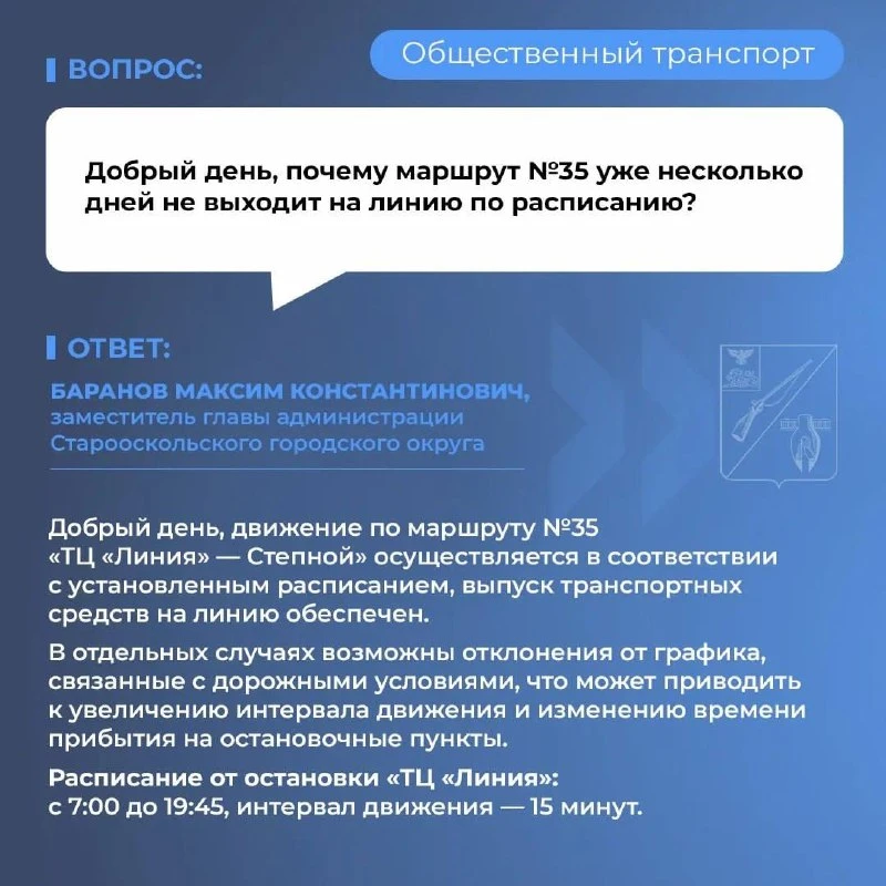 🚌В постоянной рубрике от мэрии об общественном транспорте рассказали о движении маршрута № 35.