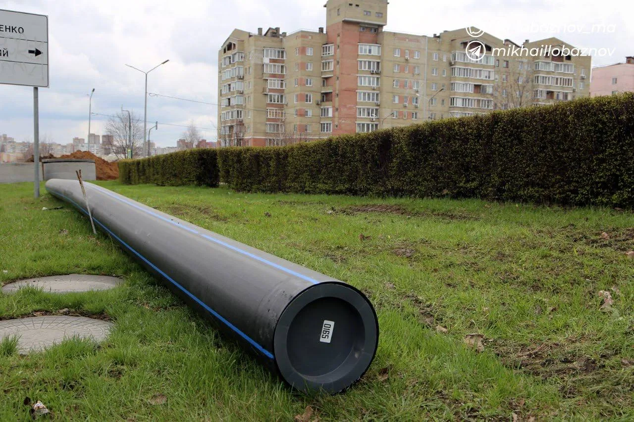 Меняют трубу диаметром 250 мм на новую — 300 мм. Протяжённость участка составляет 550 метров — от проспекта Алексея Угарова до проспекта Николая Шевченко.