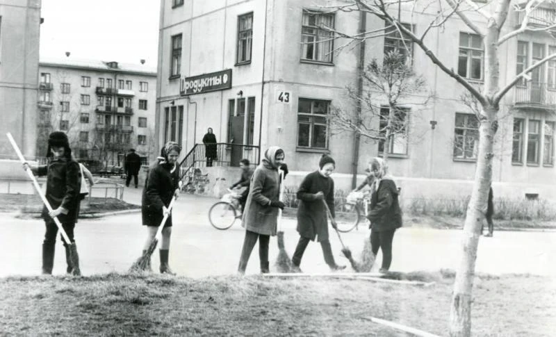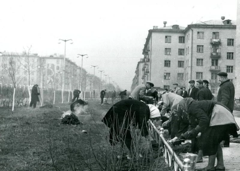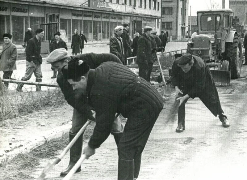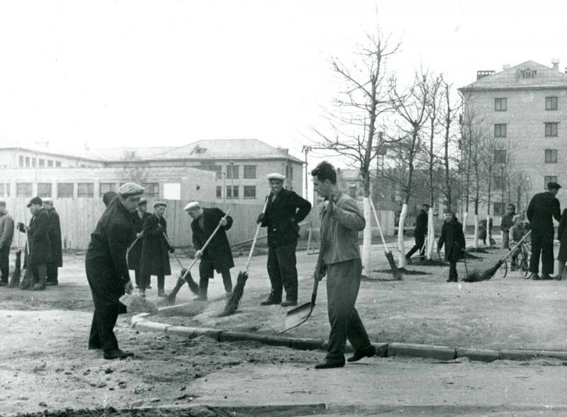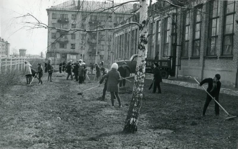 Общегородской воскресник 25 апреля 1965 г. На улице Вологодской работает обжимной цех